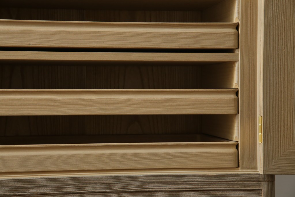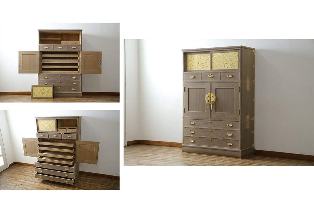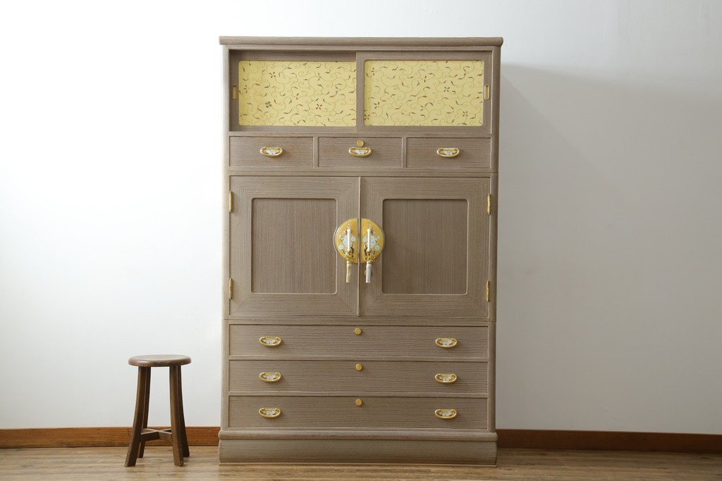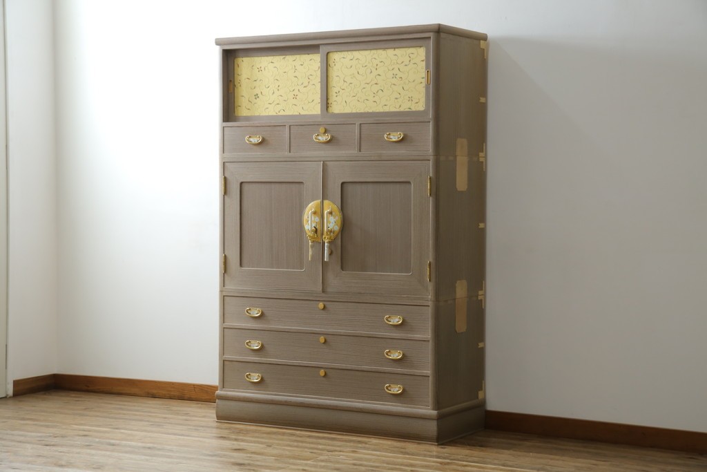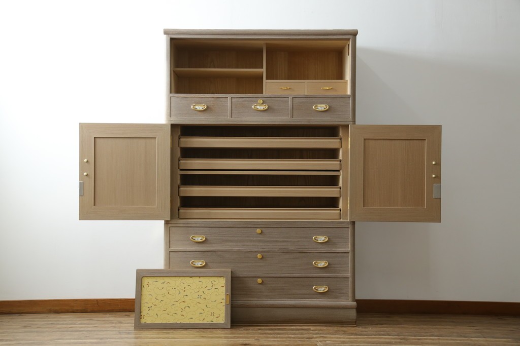 和箪笥				> 中古 美品 最高級 通産大臣指定伝統工芸品 伝統工芸士 鹿島金正作 高千穂 品のある佇まいで和の雰囲気を引き立てる名古屋総桐たんす(胴丸) 定価約250万円相当 (R-079829)