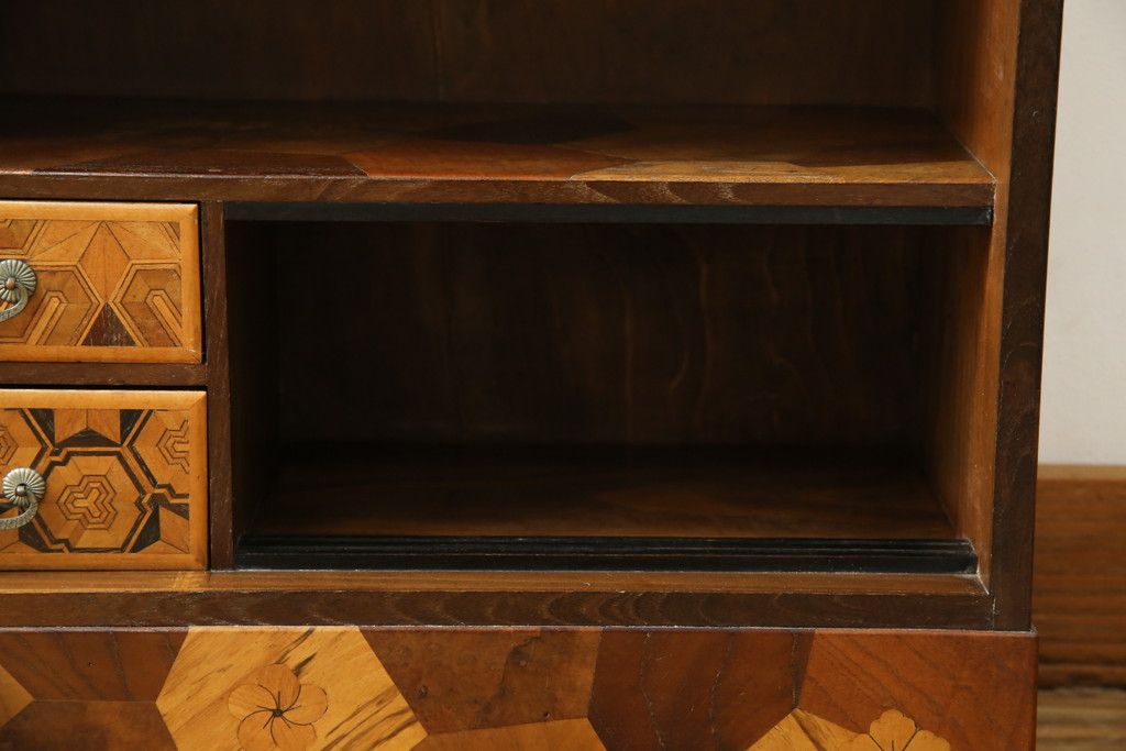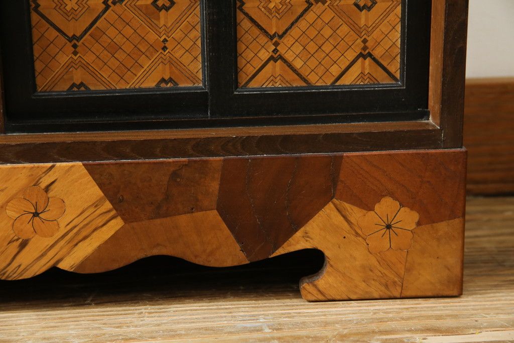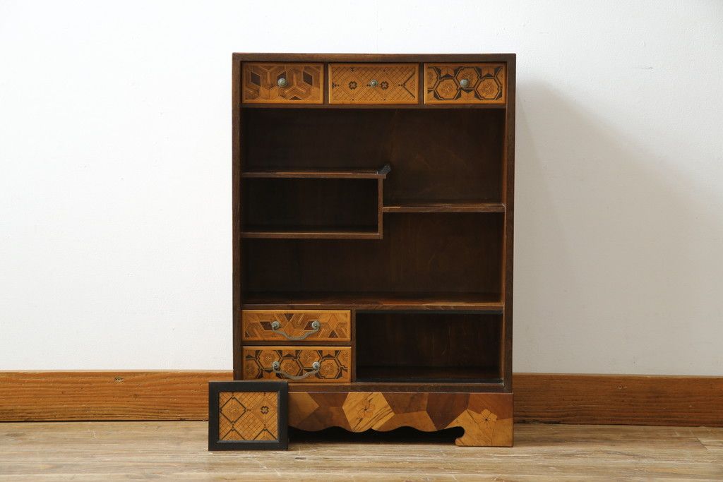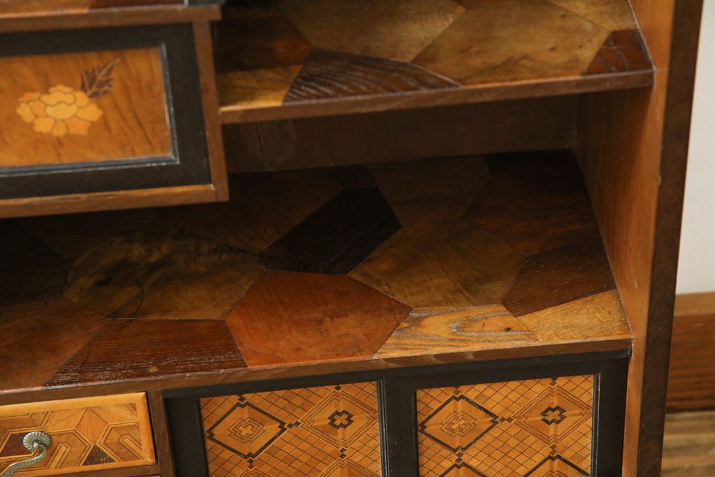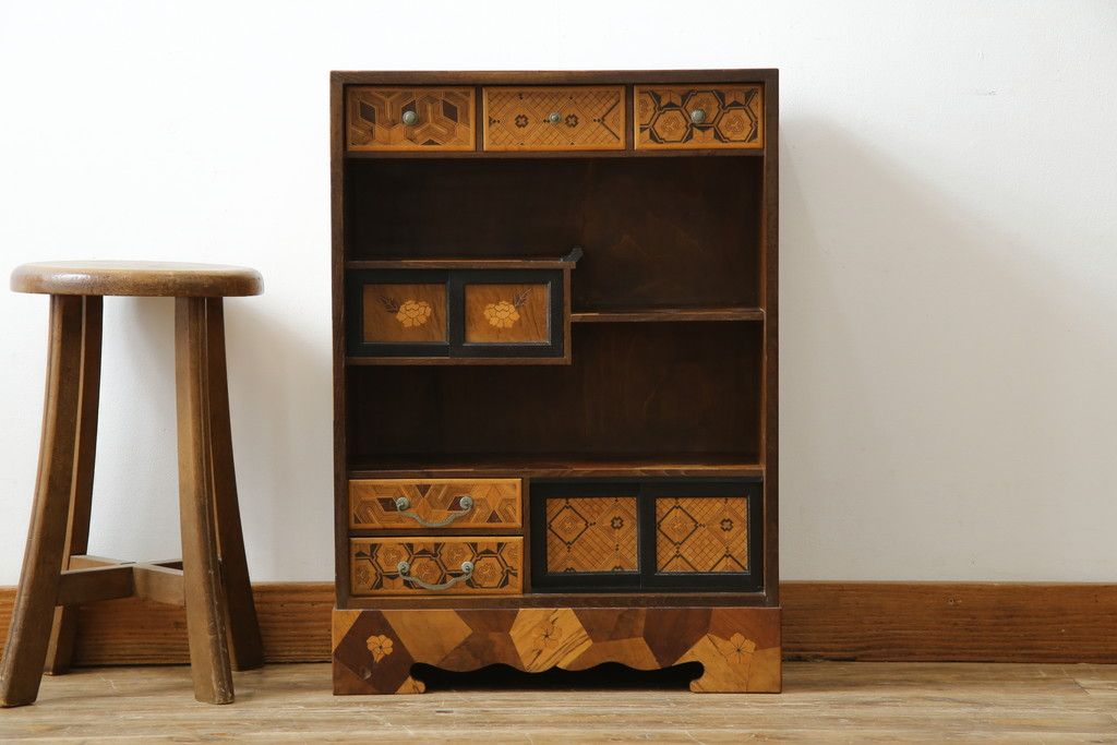 和製アンティーク 激レア 希少!! 戦前 時代物 置いてあるだけで絵になる箱根細工の人形棚(飾り棚、箱根寄木細工、茶棚、茶箪笥、収納棚、戸棚)(R-079924)