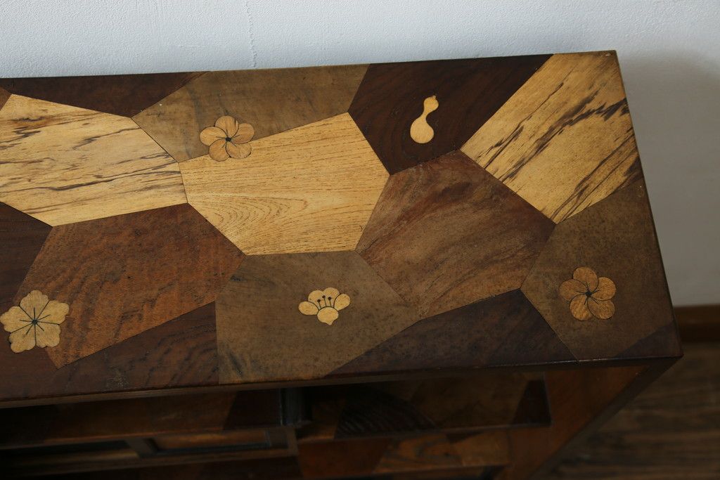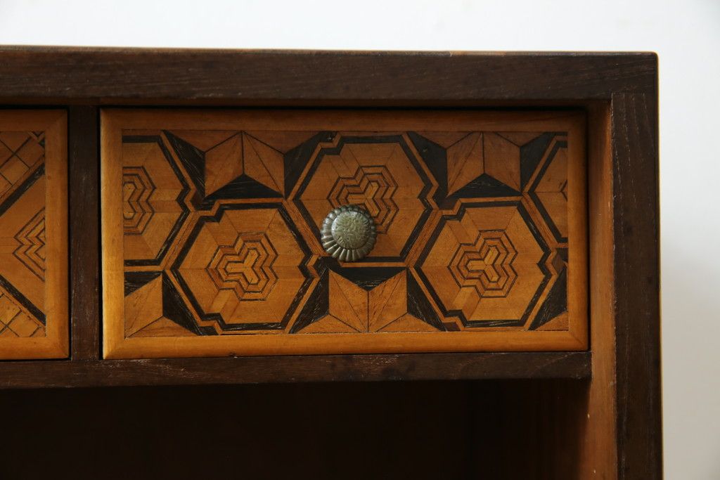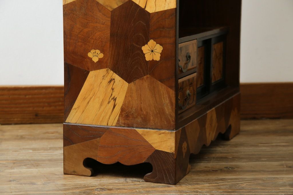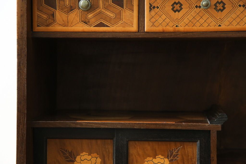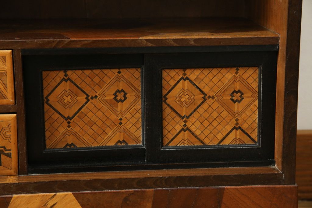 民芸家具 > 和製アンティーク 激レア 希少!! 戦前 時代物 置いてあるだけで絵になる箱根細工の人形棚(飾り棚、箱根寄木細工、茶棚、茶箪笥、収納棚、戸棚)(R-079924)