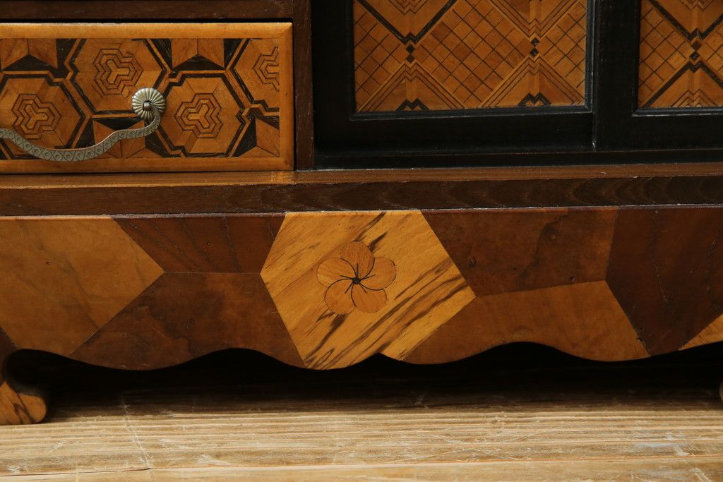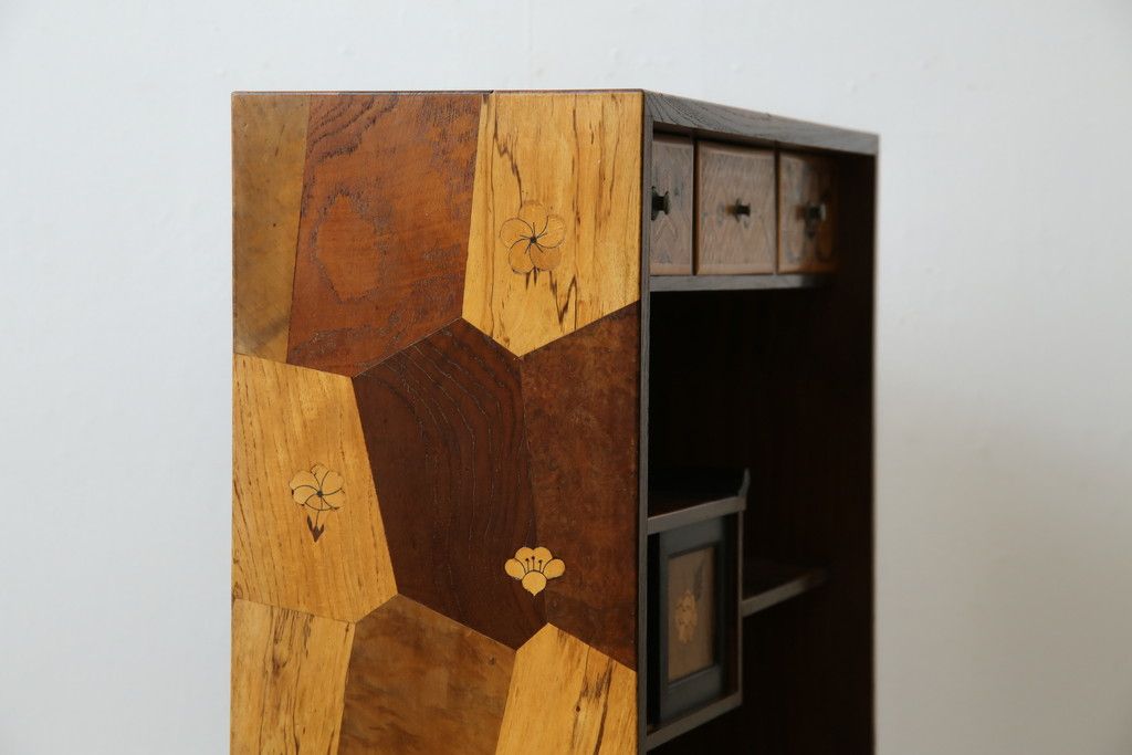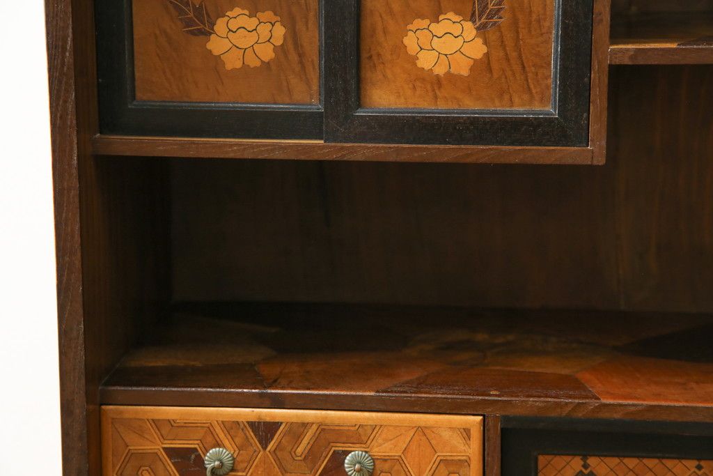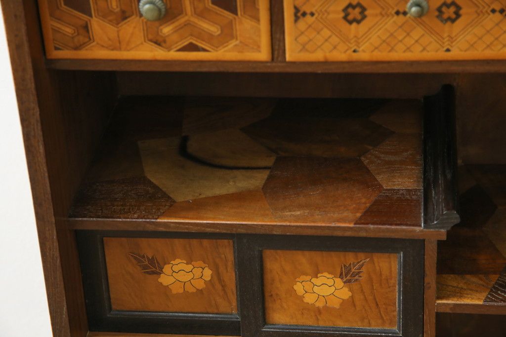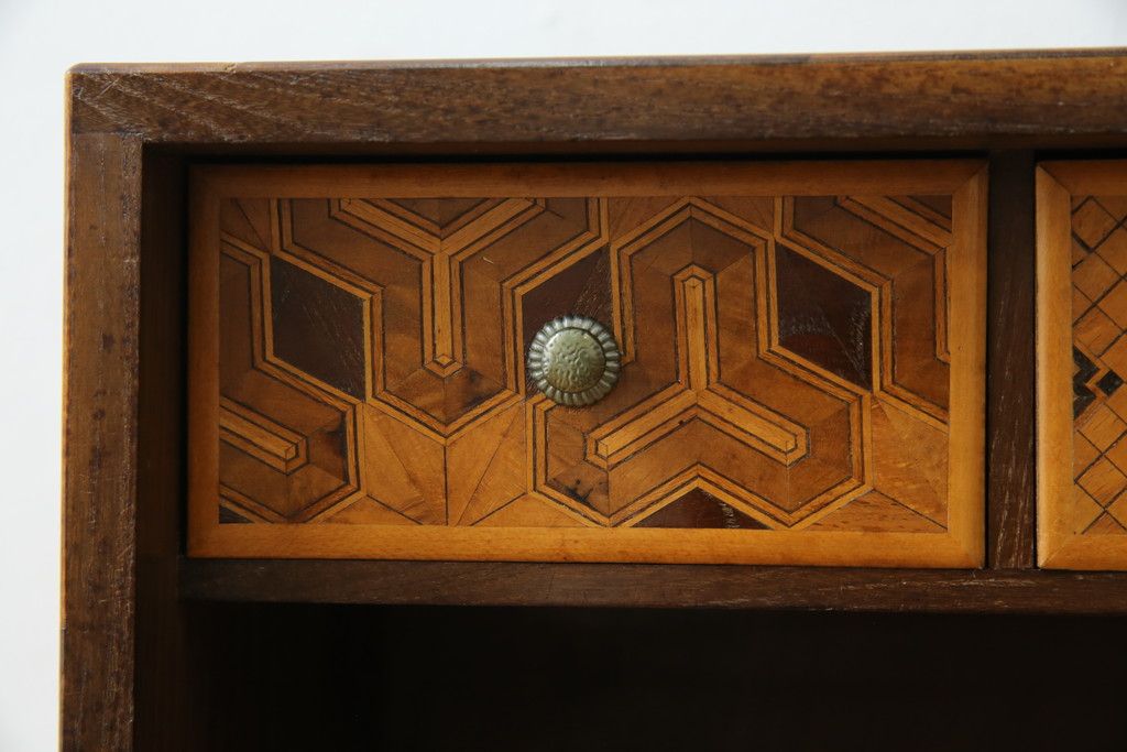 民芸家具 > 和製アンティーク 激レア 希少!! 戦前 時代物 置いてあるだけで絵になる箱根細工の人形棚(飾り棚、箱根寄木細工、茶棚、茶箪笥、収納棚、戸棚)(R-079924)