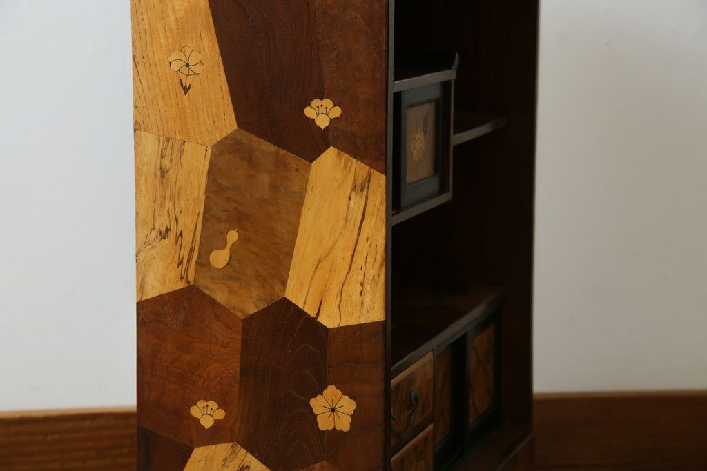 和製アンティーク 激レア 希少!! 戦前 時代物 置いてあるだけで絵になる箱根細工の人形棚(飾り棚、箱根寄木細工、茶棚、茶箪笥、収納棚、戸棚)(R-079924)です。