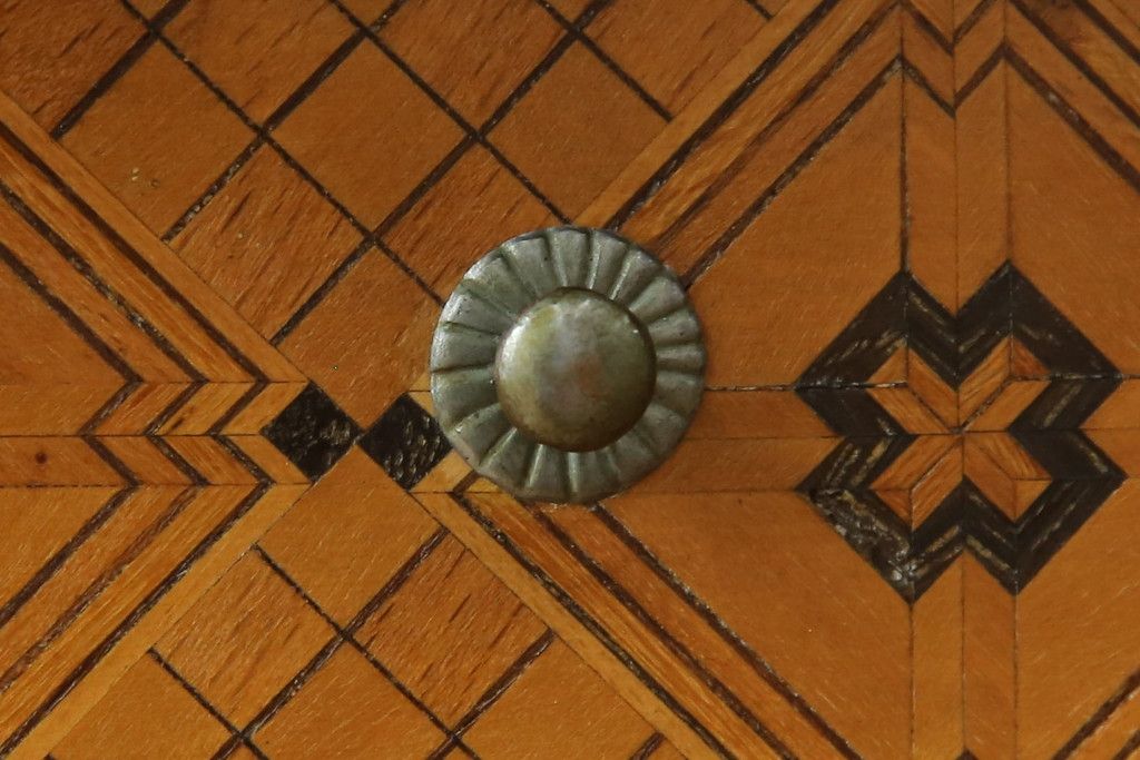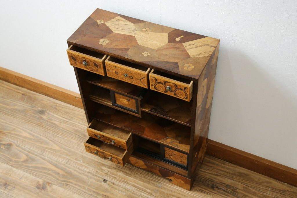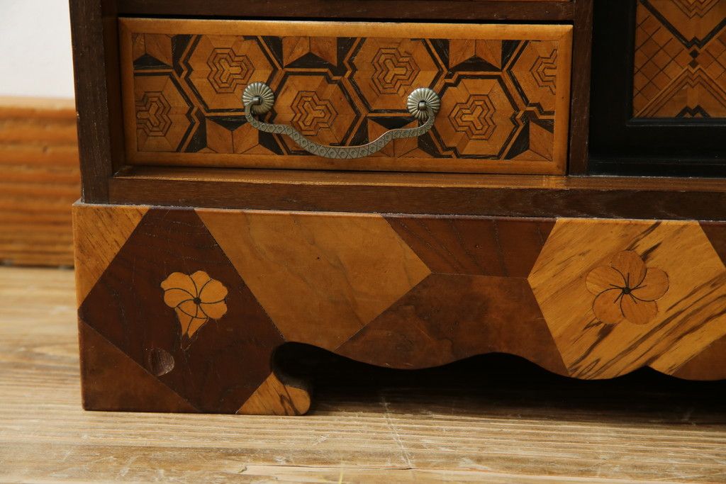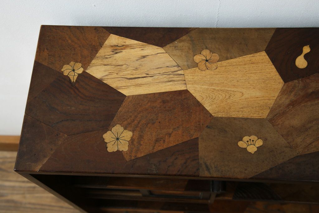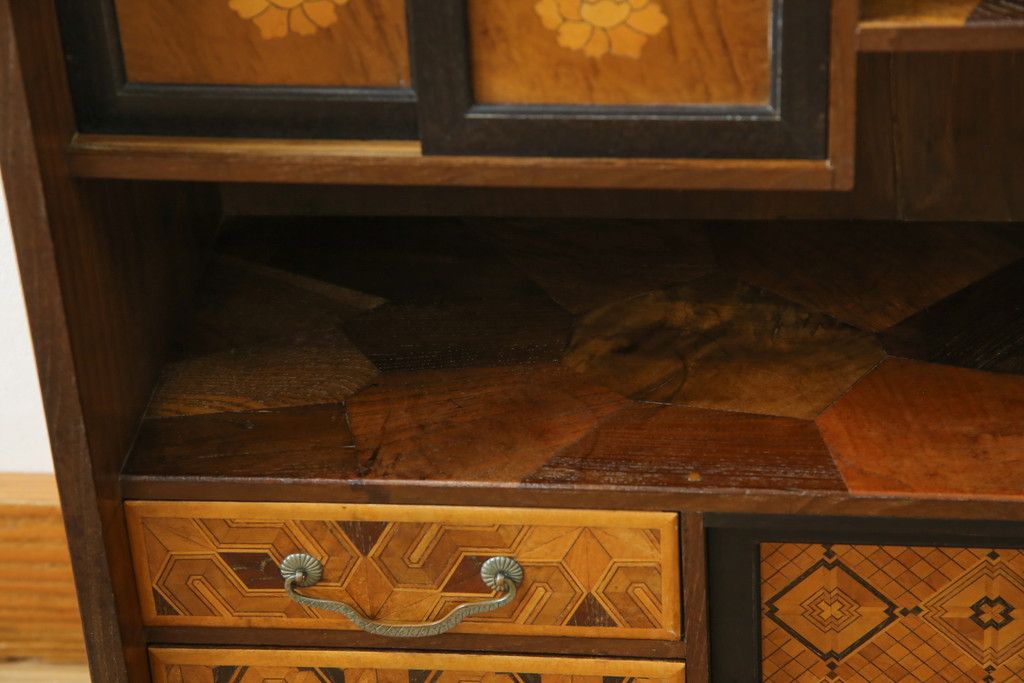 和箪笥> 茶箪笥・茶棚 > 和製アンティーク 激レア 希少!! 戦前 時代物 置いてあるだけで絵になる箱根細工の人形棚(飾り棚、箱根寄木細工、茶棚、茶箪笥、収納棚、戸棚)(R-079924)