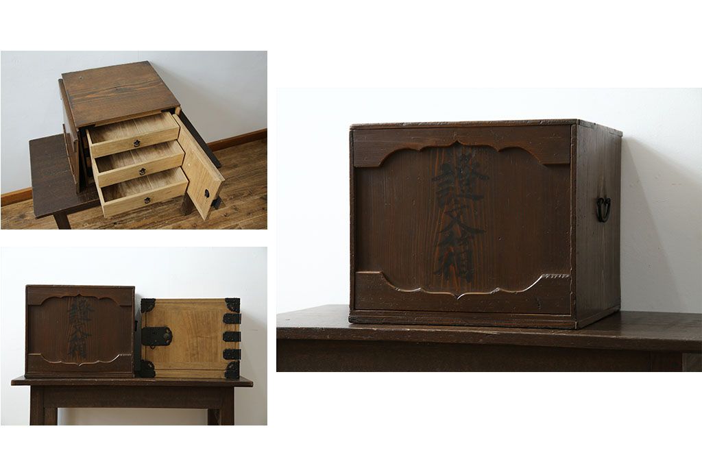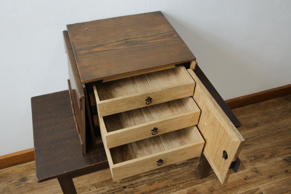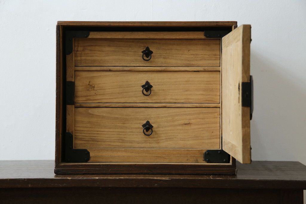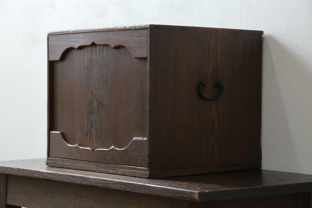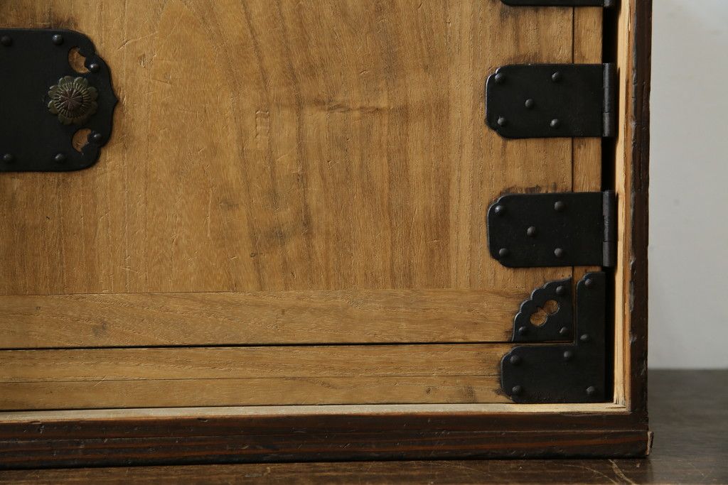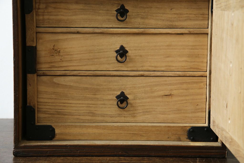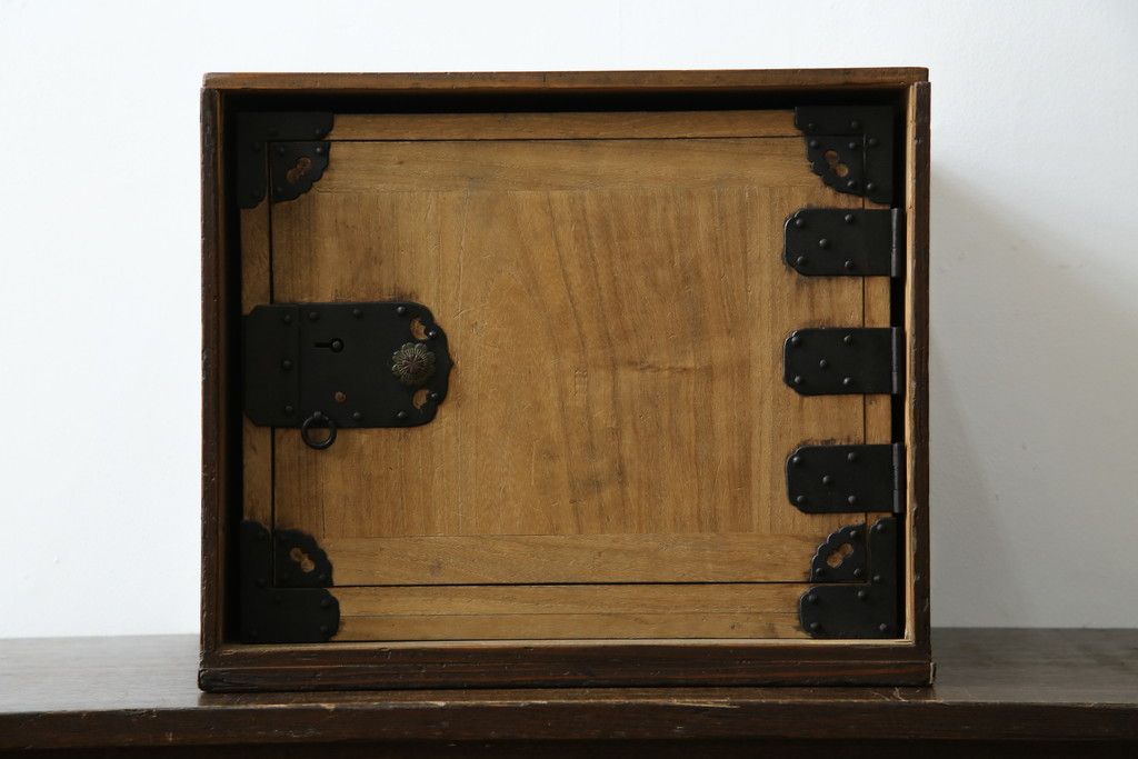 和箪笥> 小箪笥 > 和製アンティーク 外箱付き 天保 歴史を感じる桐材の證文箱(証文箱、船箪笥、小引き出し、収納箪笥、小物収納)(R-080256)
