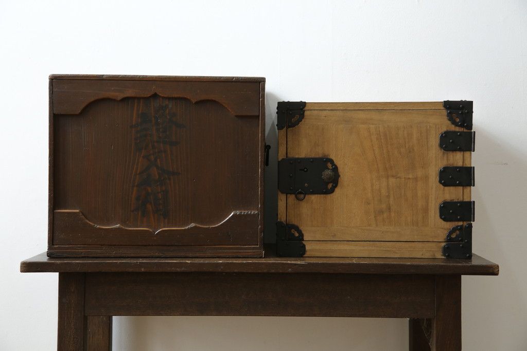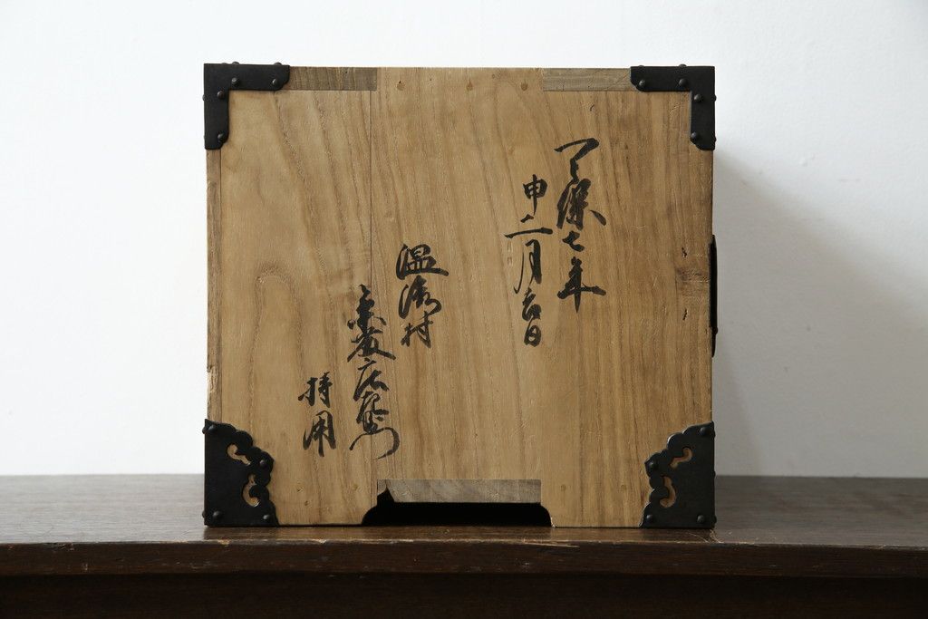 和製アンティーク 外箱付き 天保 歴史を感じる桐材の證文箱(証文箱、船箪笥、小引き出し、収納箪笥、小物収納)(R-080256)