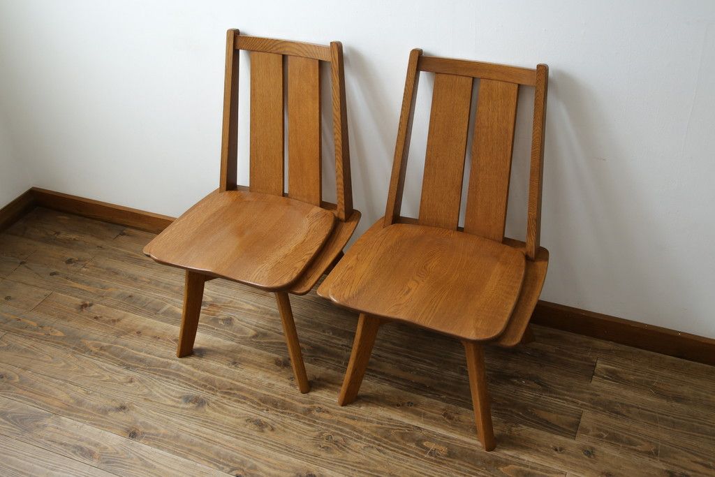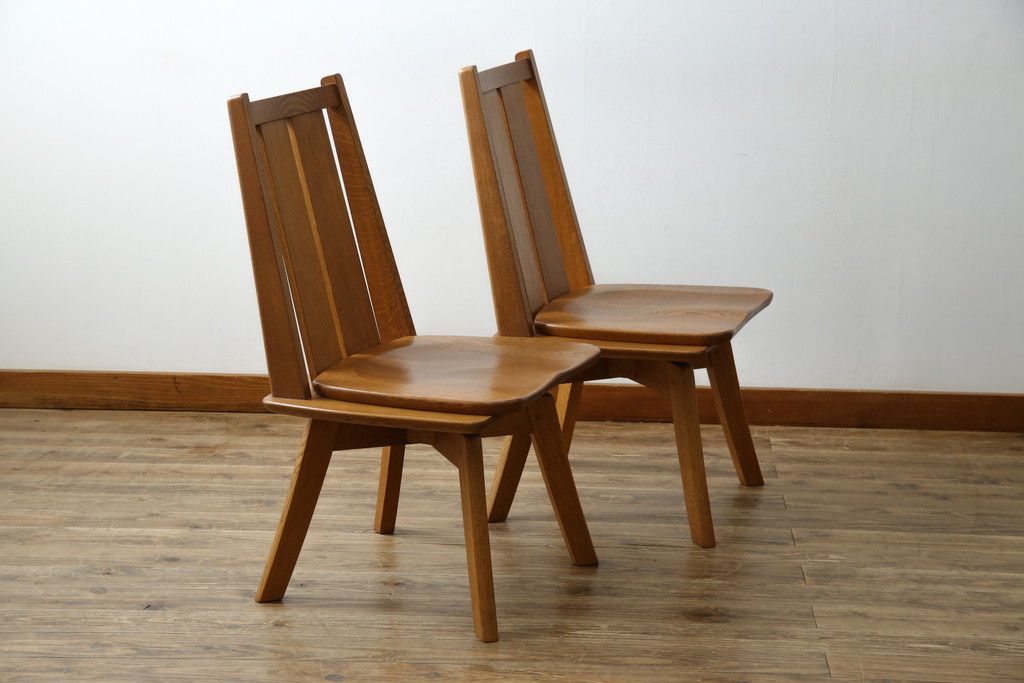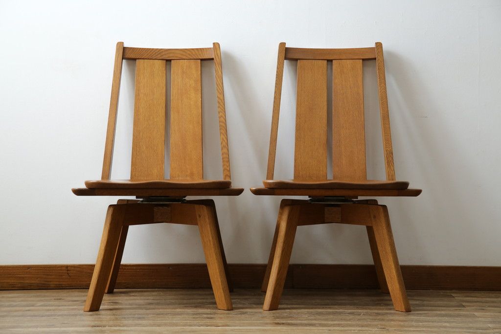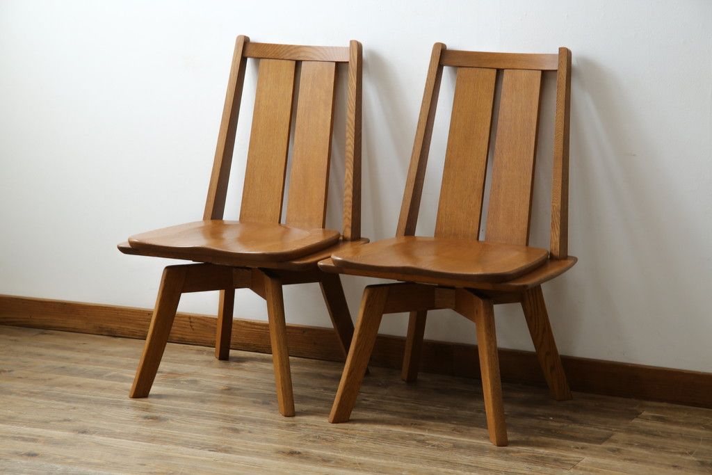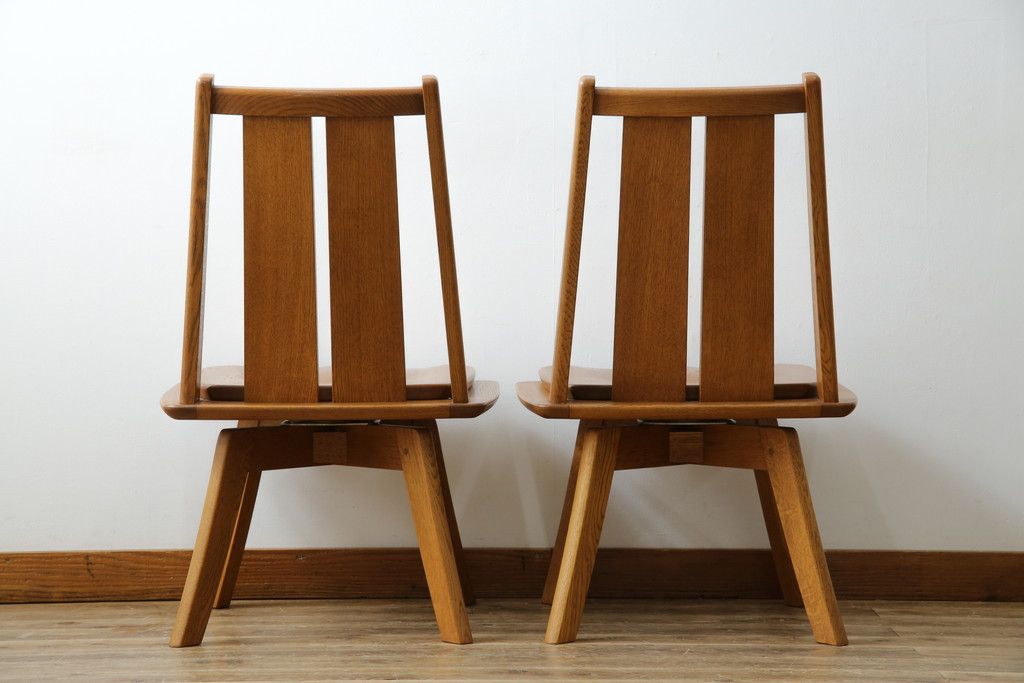 中古 美品 希少な廃番品 飛騨清見工房(HIDA kiyomi koubou)(大日家具工業) 楢(ナラ)材 無垢 ナラ無垢材がふんだんに使用された回転チェア2脚セット(板座チェア、回転イス、ダイニングチェア、椅子、バラ売り可能)(定価2脚で約16万円)(R-080672)です。