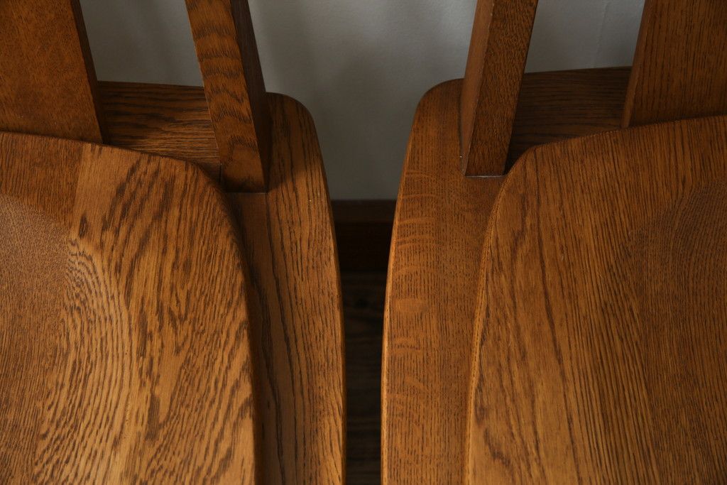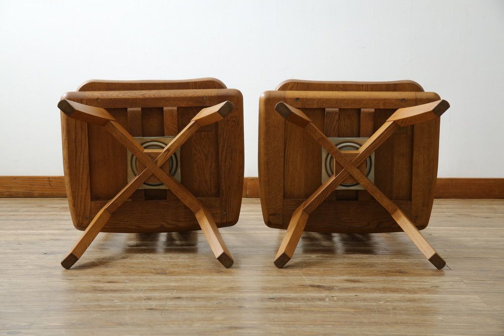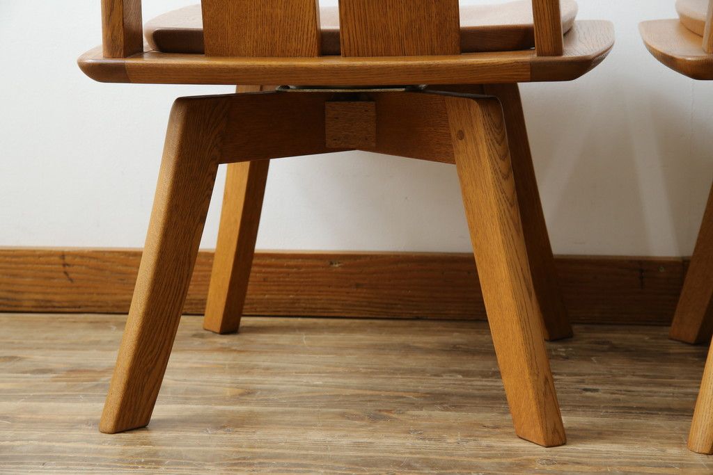椅子・ベンチ> 回転椅子 > 中古 美品 希少な廃番品 飛騨清見工房(HIDA kiyomi koubou)(大日家具工業) 楢(ナラ)材 無垢 ナラ無垢材がふんだんに使用された回転チェア2脚セット(板座チェア、回転イス、ダイニングチェア、椅子、バラ売り可能)(定価2脚で約16万円)(R-080672)