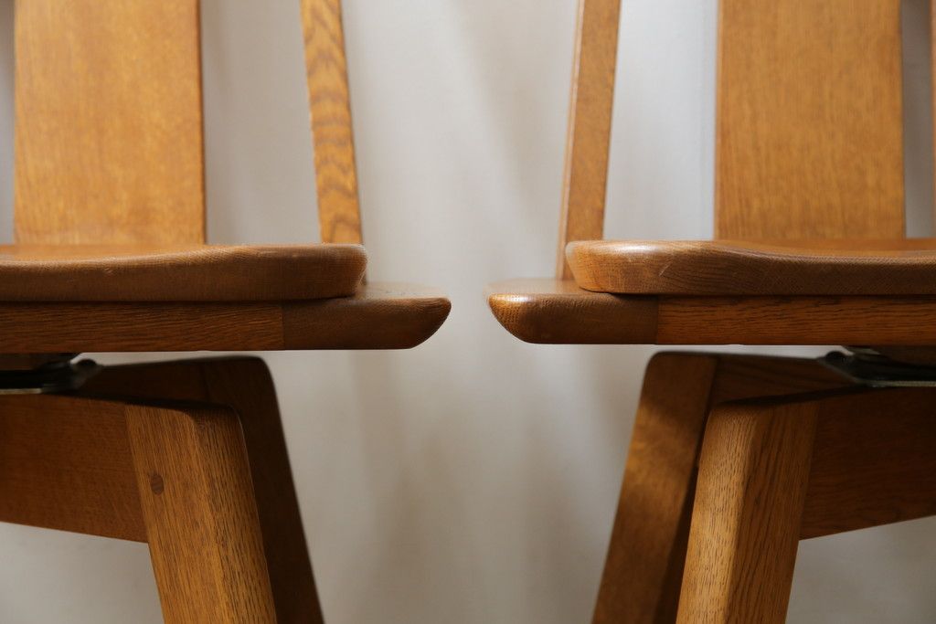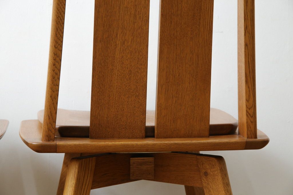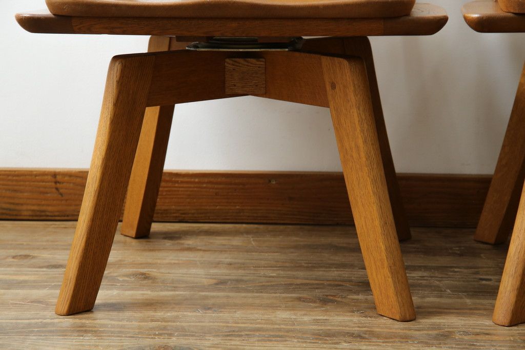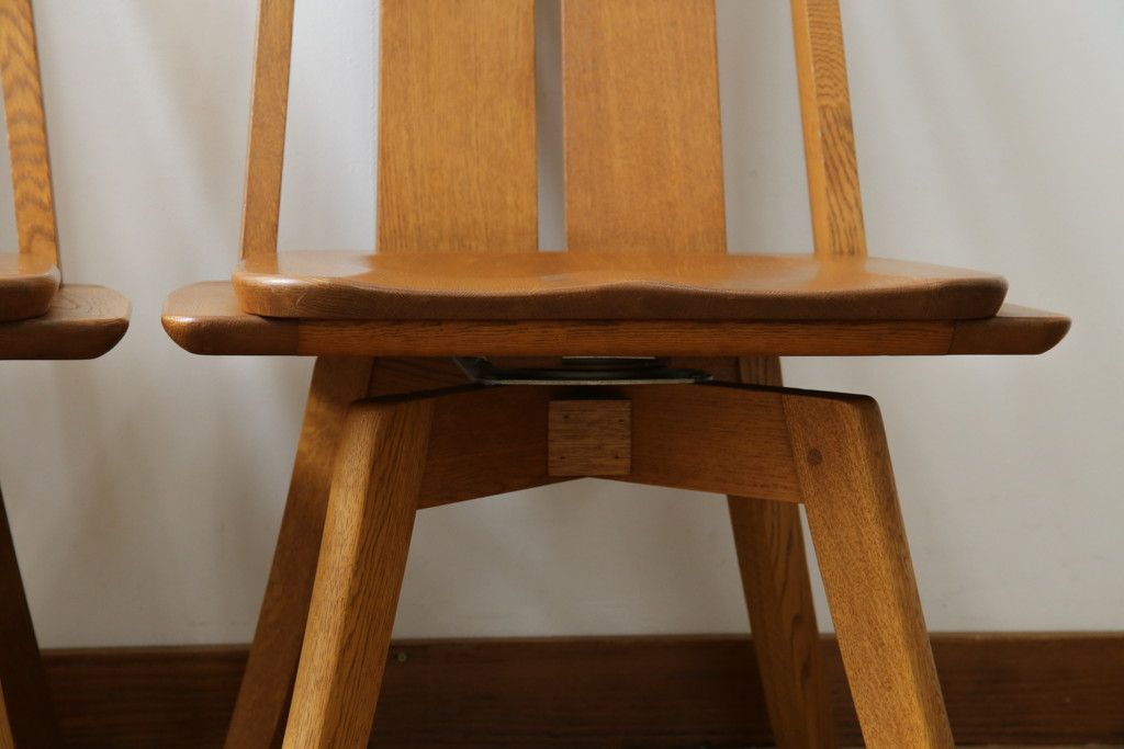 椅子・ベンチ> ダイニングチェア > 中古 美品 希少な廃番品 飛騨清見工房(HIDA kiyomi koubou)(大日家具工業) 楢(ナラ)材 無垢 ナラ無垢材がふんだんに使用された回転チェア2脚セット(板座チェア、回転イス、ダイニングチェア、椅子、バラ売り可能)(定価2脚で約16万円)(R-080672)