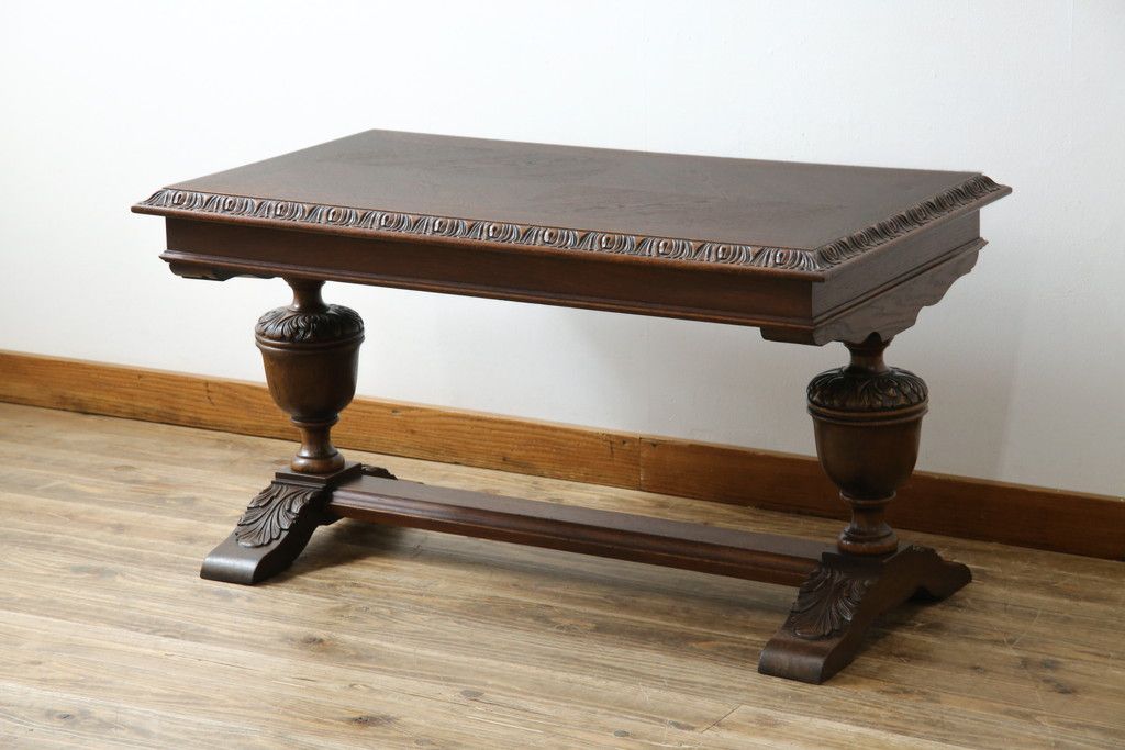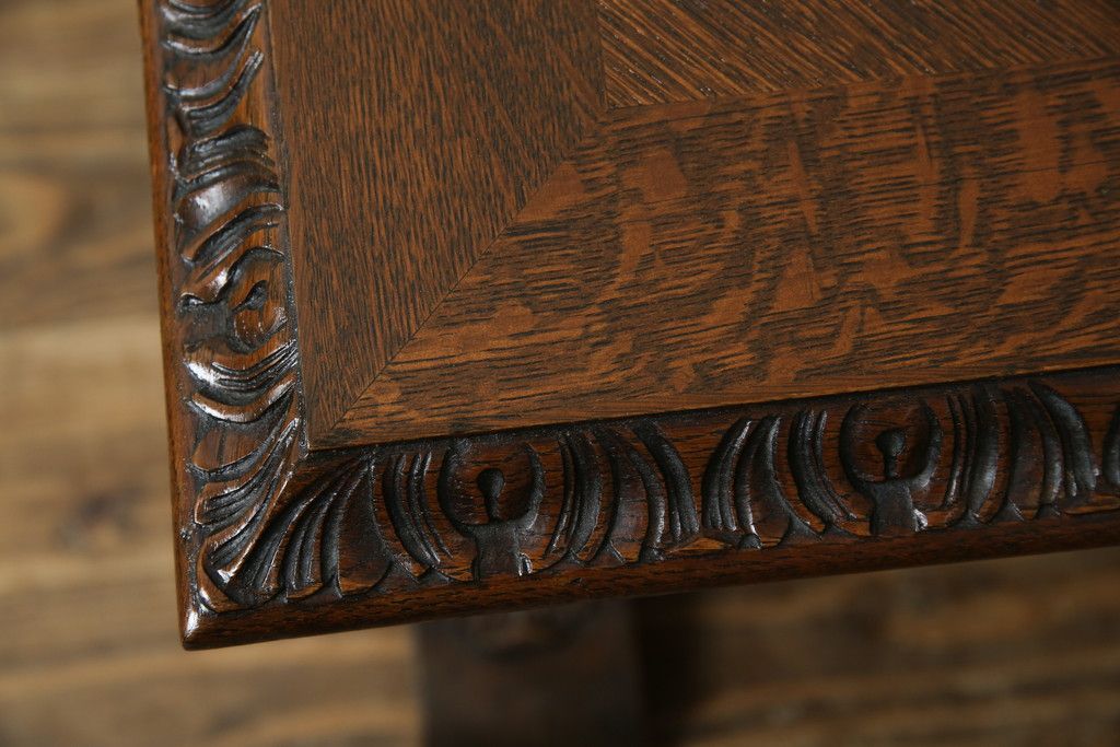 テーブル> センターテーブル・ローテーブル > 【S様ご決済用】イギリスアンティーク 高級品!! オーク材 パ-ケットリー(象嵌)天板とバルボスレッグが目を引くセンターテーブル(ローテーブル、リビングテーブル、コーヒーテーブル、英国)(R-080749)