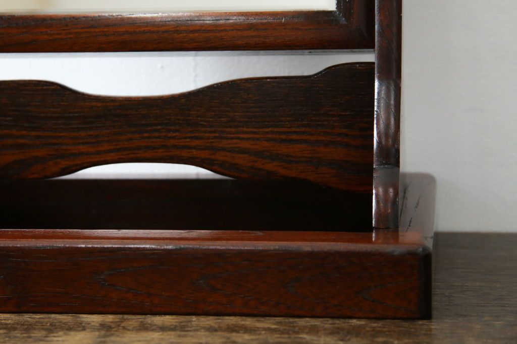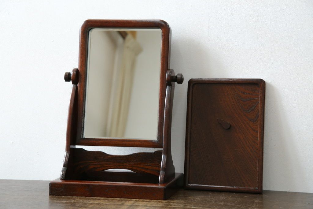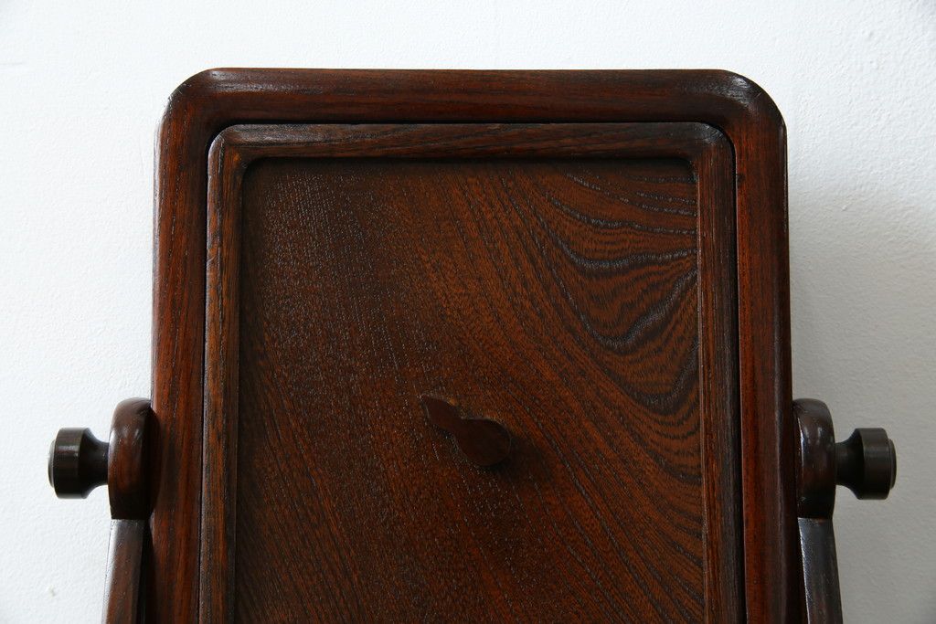 中古 民芸家具 上手物 職人手作り工芸家具 総欅(ケヤキ)材 丸みを帯びたフォルムが可愛らしい卓上ミラー(鏡、スタンドミラー)(R-080757)