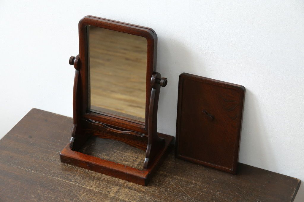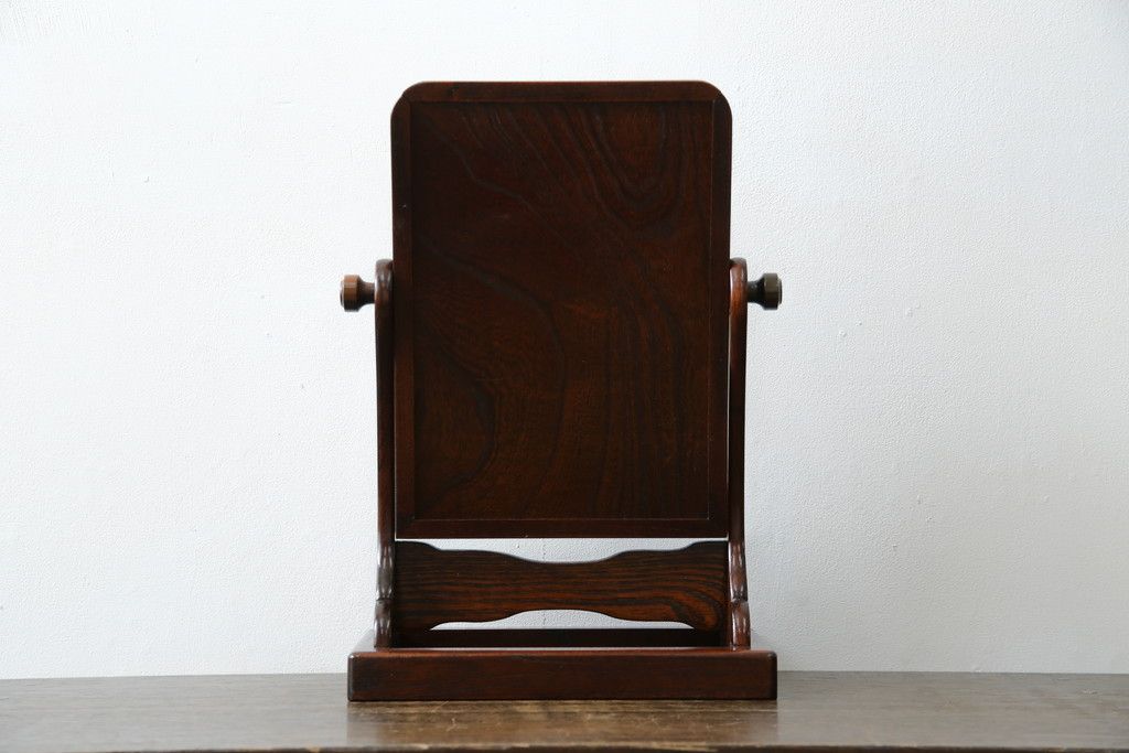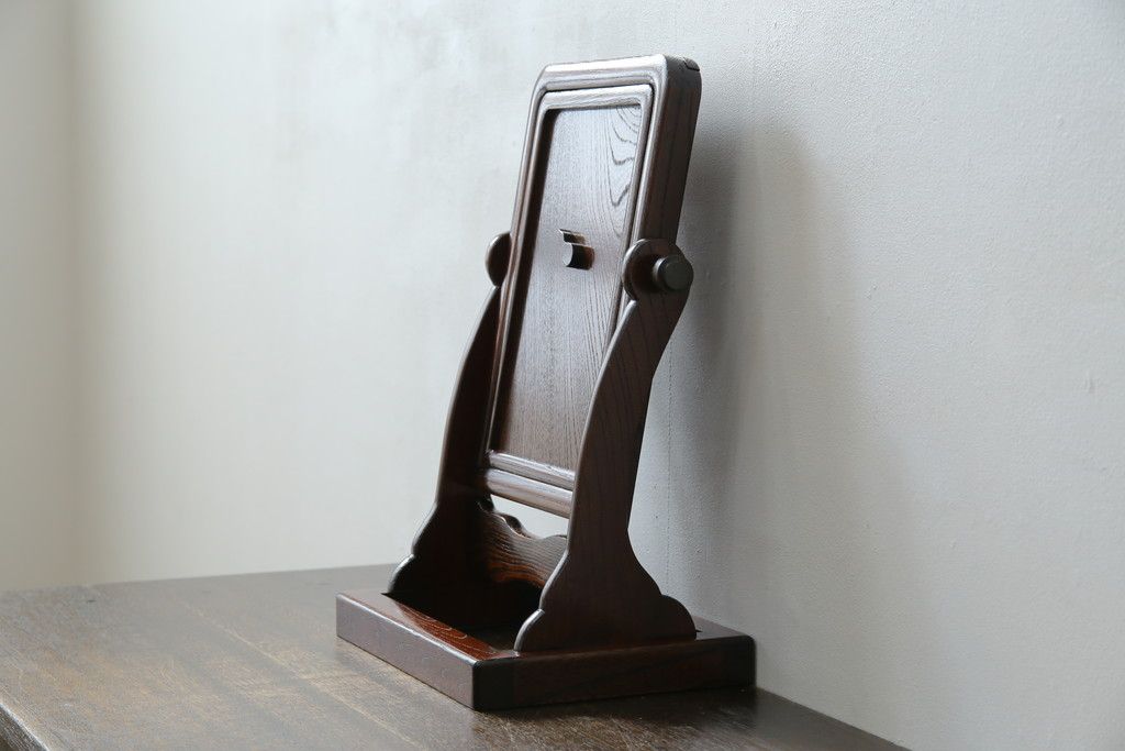 中古 民芸家具 上手物 職人手作り工芸家具 総欅(ケヤキ)材 丸みを帯びたフォルムが可愛らしい卓上ミラー(鏡、スタンドミラー)(R-080757)です。