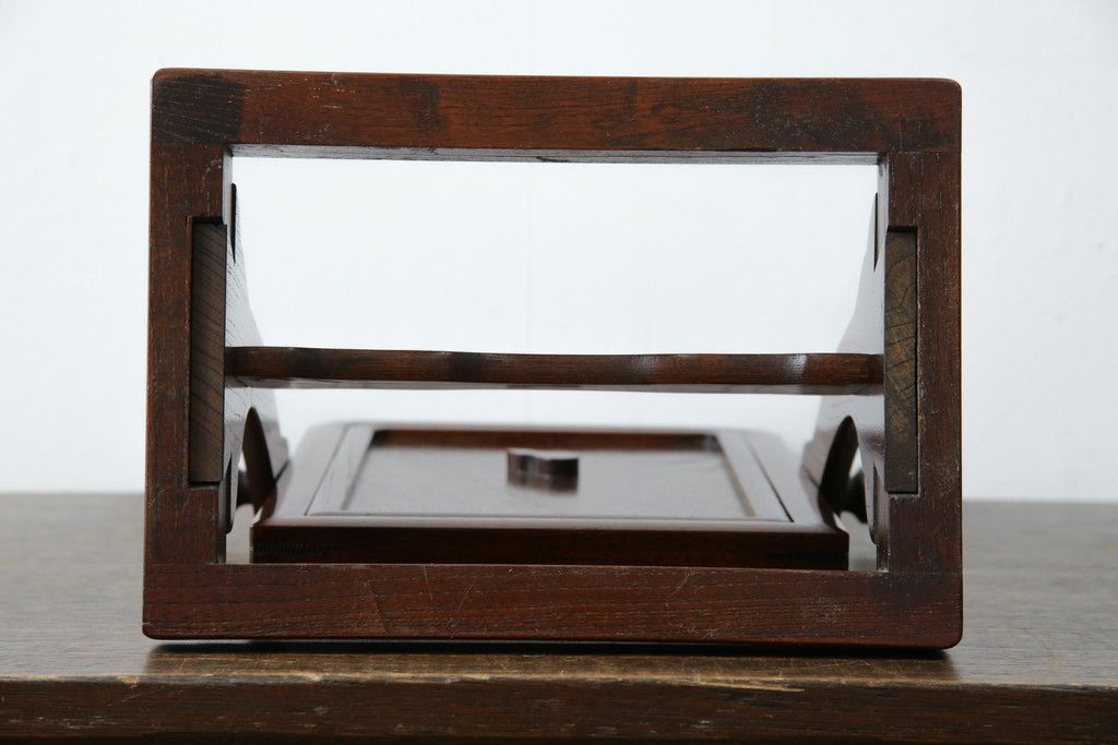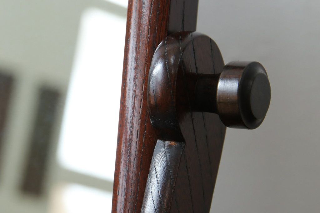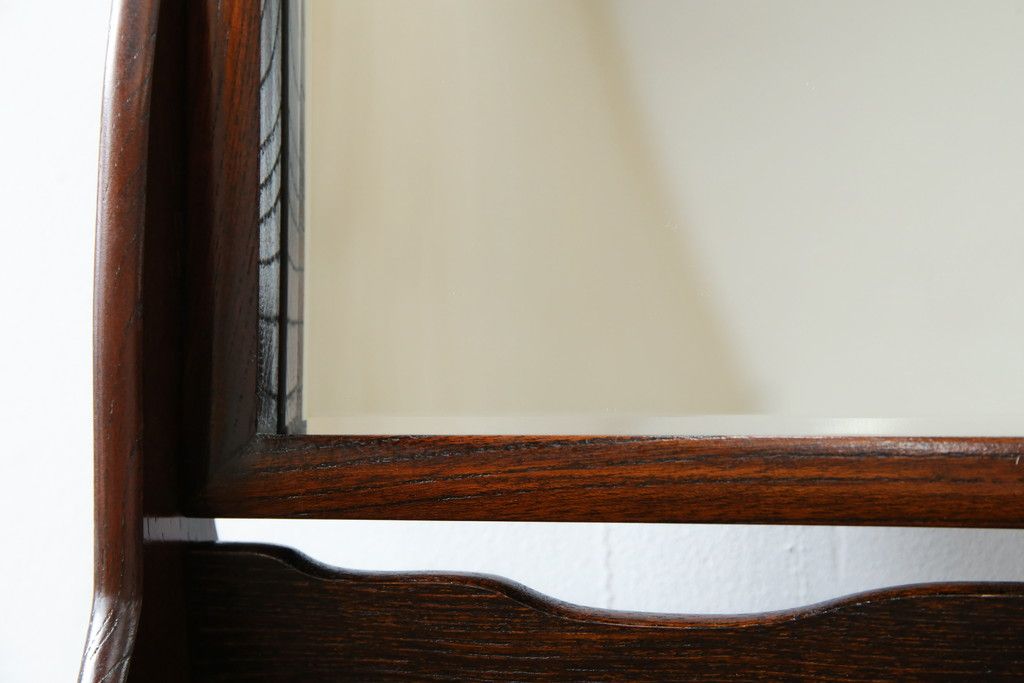 民芸家具 > 中古 民芸家具 上手物 職人手作り工芸家具 総欅(ケヤキ)材 丸みを帯びたフォルムが可愛らしい卓上ミラー(鏡、スタンドミラー)(R-080757)