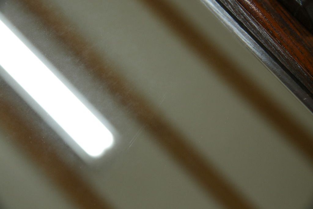 鏡 > 中古 民芸家具 上手物 職人手作り工芸家具 総欅(ケヤキ)材 丸みを帯びたフォルムが可愛らしい卓上ミラー(鏡、スタンドミラー)(R-080757)