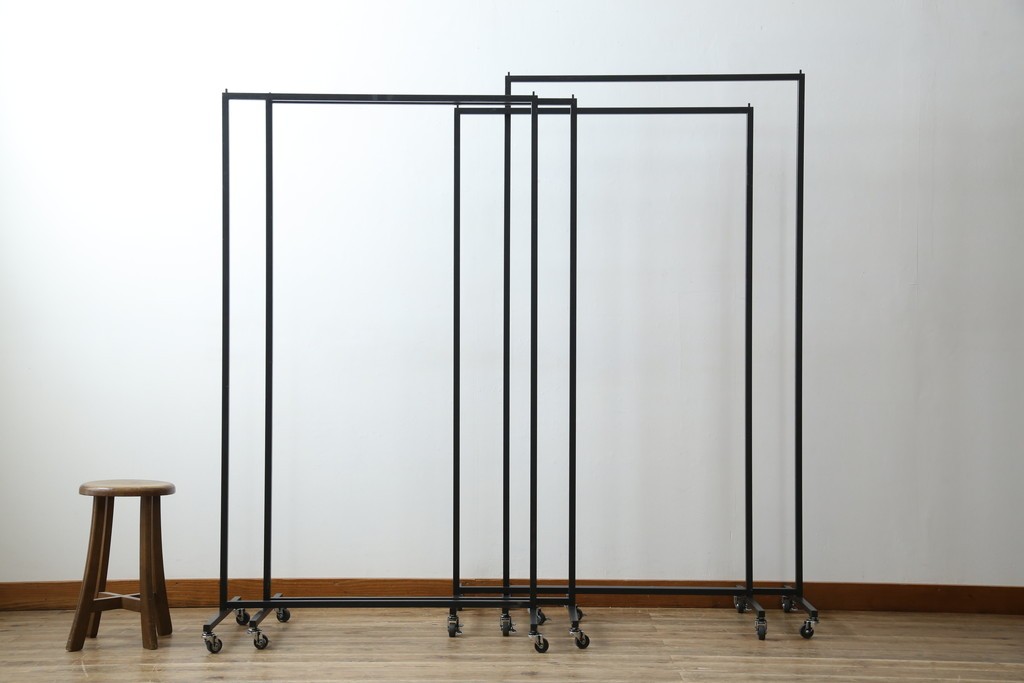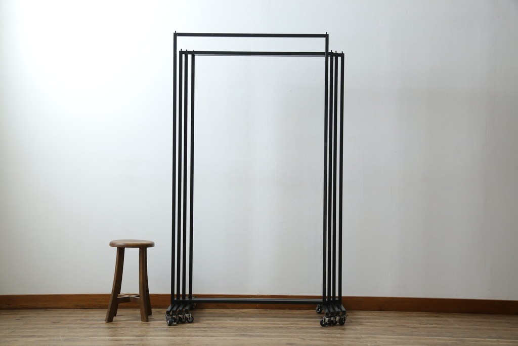 中古 鉄工所手作り オーダー品!! シンプルなスチールハンガー4点セット (R-080787)
