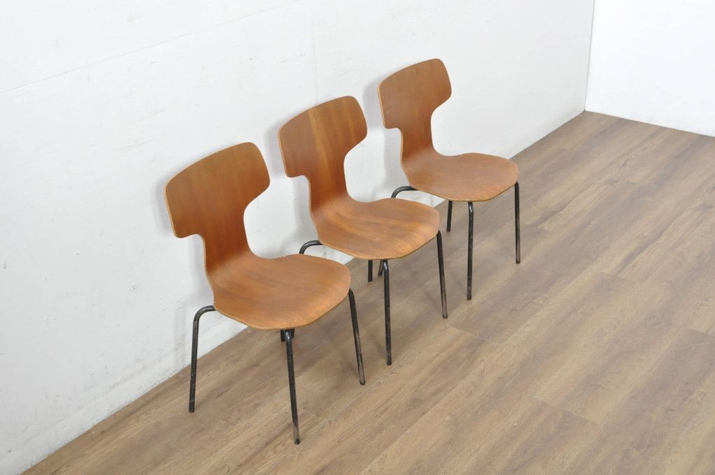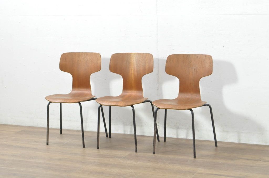 ラフジュ工房> 椅子・ベンチ> ダイニングチェア > デンマークビンテージ FRITZ HANSEN(フリッツハンセン) Arne Jacobsen(アルネ・ヤコブセン) model.3123 子供用Tチェア3脚セット(キッズチェア、ハンマーチェア、チャイルドチェア、ダイニングチェア、板座チェア、北欧、ヴィンテージ、バラ売り可能)(R-080793)