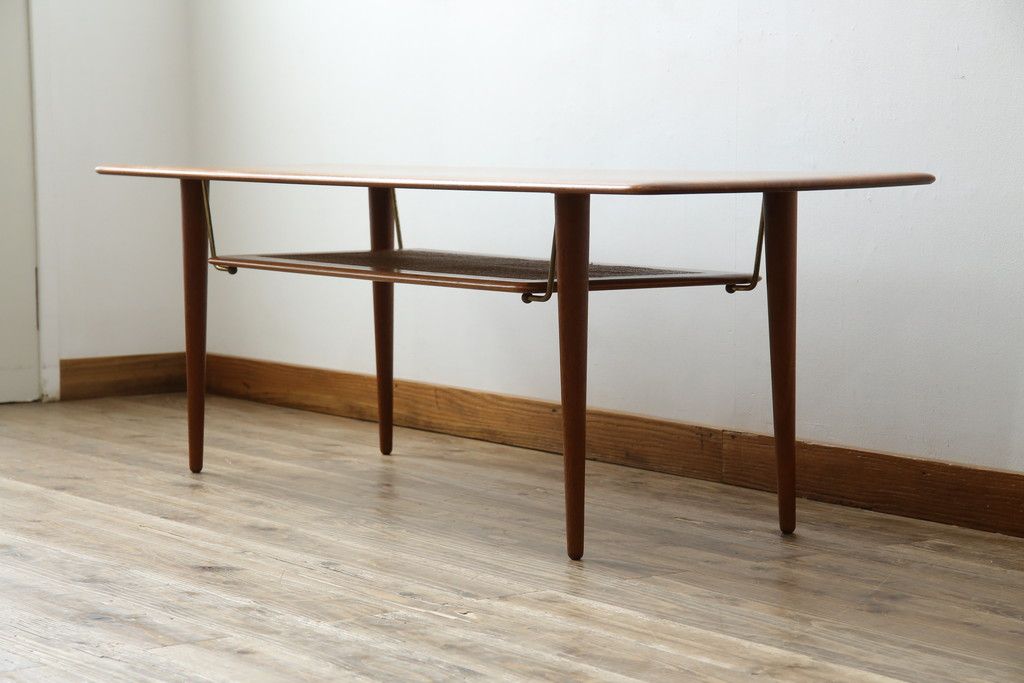 テーブル> センターテーブル・ローテーブル > デンマークビンテージ France&Son(フランス&サン) Peter Hvidt&Orla Molgaard-Nielsen(ピーター・ビット&オルラ・ムルガード・ニールセン) FD516 チーク材・真鍮・籐(ラタン)の組み合わせがおしゃれなコーヒーテーブル(ローテーブル、センターテーブル、リビングテーブル、北欧、ヴィンテージ)(R-080803)