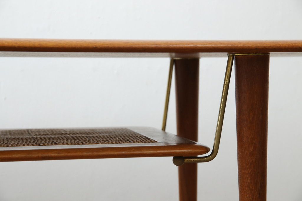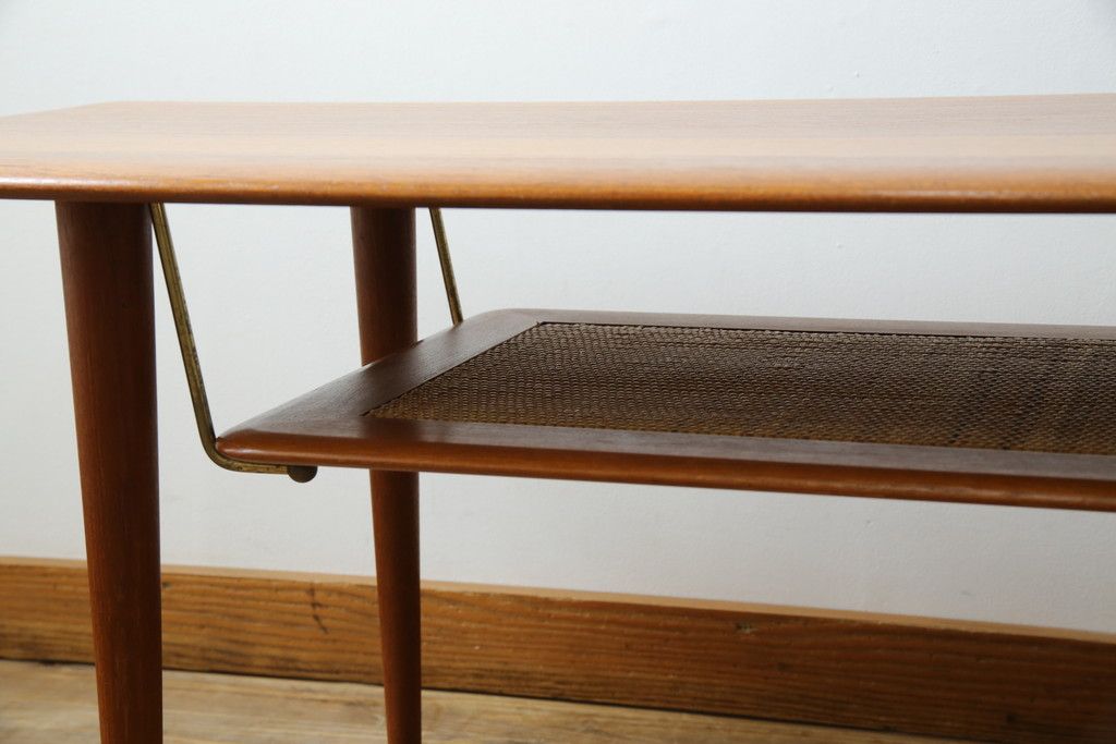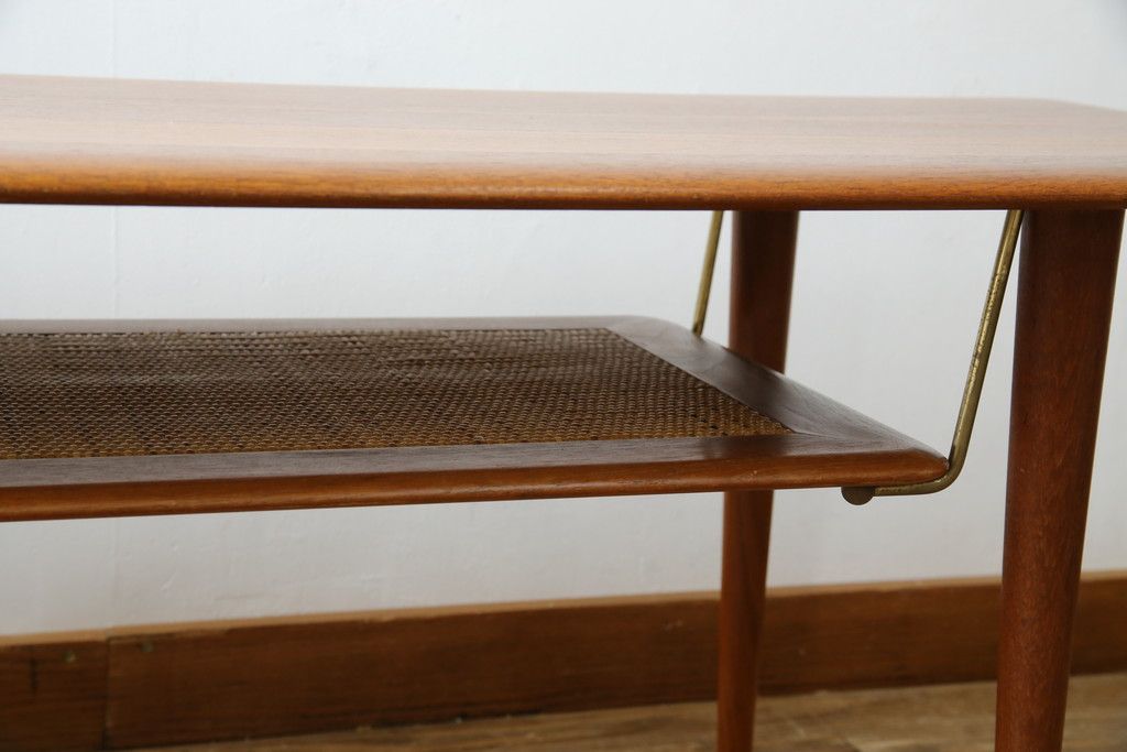 テーブル> カフェテーブル・コーヒーテーブル > デンマークビンテージ France&Son(フランス&サン) Peter Hvidt&Orla Molgaard-Nielsen(ピーター・ビット&オルラ・ムルガード・ニールセン) FD516 チーク材・真鍮・籐(ラタン)の組み合わせがおしゃれなコーヒーテーブル(ローテーブル、センターテーブル、リビングテーブル、北欧、ヴィンテージ)(R-080803)