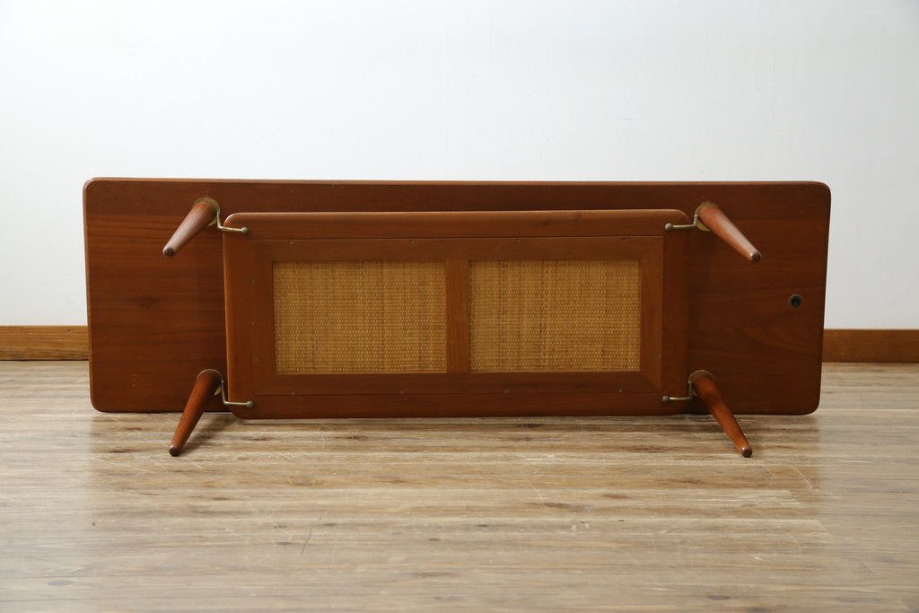 デンマークビンテージ France&Son(フランス&サン) Peter Hvidt&Orla Molgaard-Nielsen(ピーター・ビット&オルラ・ムルガード・ニールセン) FD516 チーク材・真鍮・籐(ラタン)の組み合わせがおしゃれなコーヒーテーブル(ローテーブル、センターテーブル、リビングテーブル、北欧、ヴィンテージ)(R-080803)