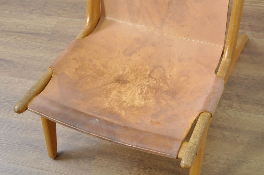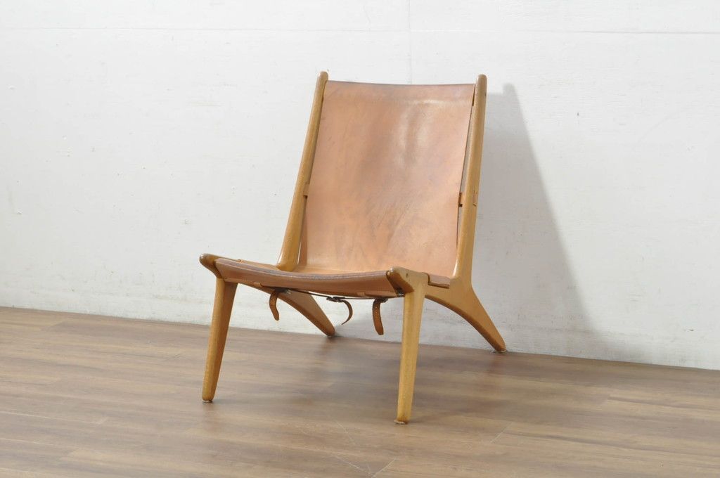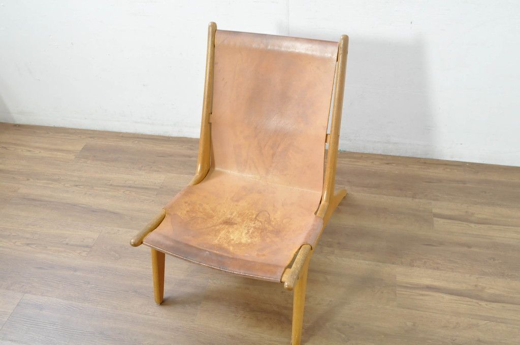 椅子・ベンチ> ラウンジチェア > 【簡易リペア限定品】北欧ビンテージ スウェーデン Luxus(ラクサス)社製 Uno&Osten Kristiansson(ウノ&オステン・クリスチャンソン兄弟) モデル204 本革(レザー) 個性的なデザインが目を惹くハンティングチェア(ラウンジチェア、イージーチェア、ヴィンテージ)(R-080805)