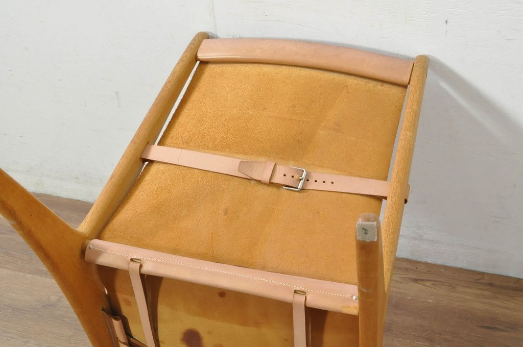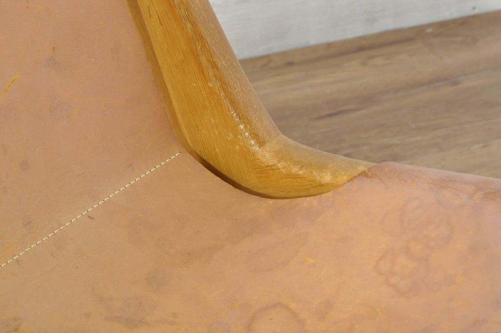 【簡易リペア限定品】北欧ビンテージ スウェーデン Luxus(ラクサス)社製 Uno&Osten Kristiansson(ウノ&オステン・クリスチャンソン兄弟) モデル204 本革(レザー) 個性的なデザインが目を惹くハンティングチェア(ラウンジチェア、イージーチェア、ヴィンテージ)(R-080805)