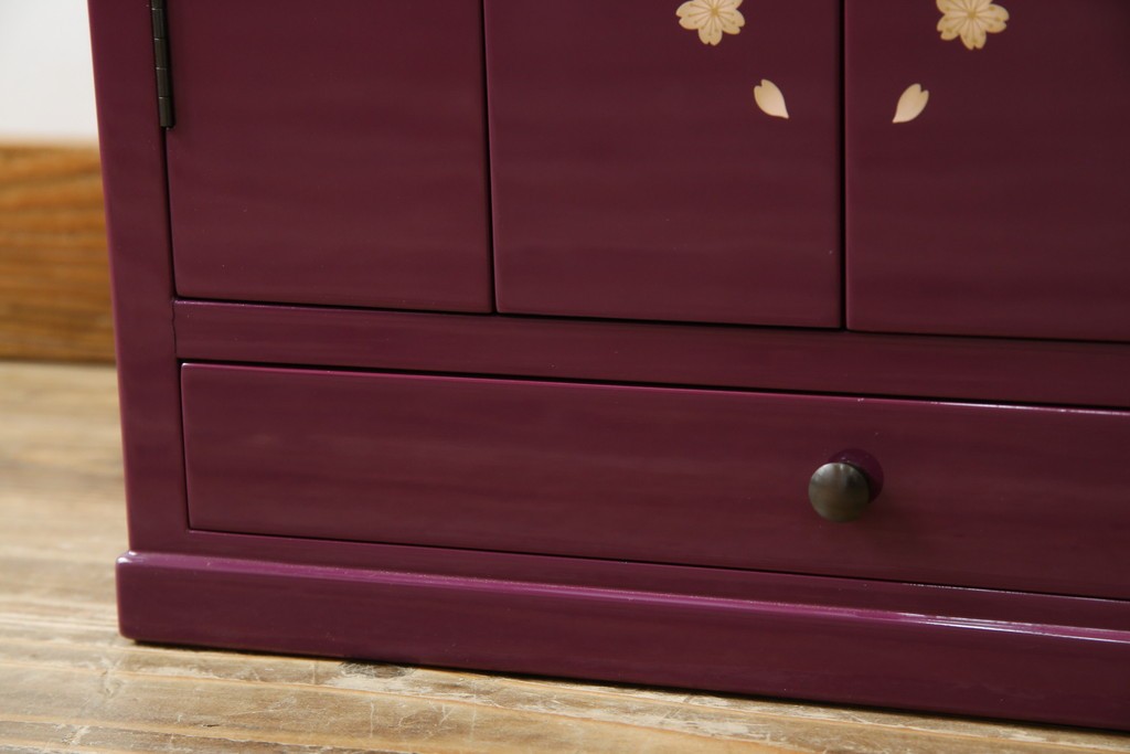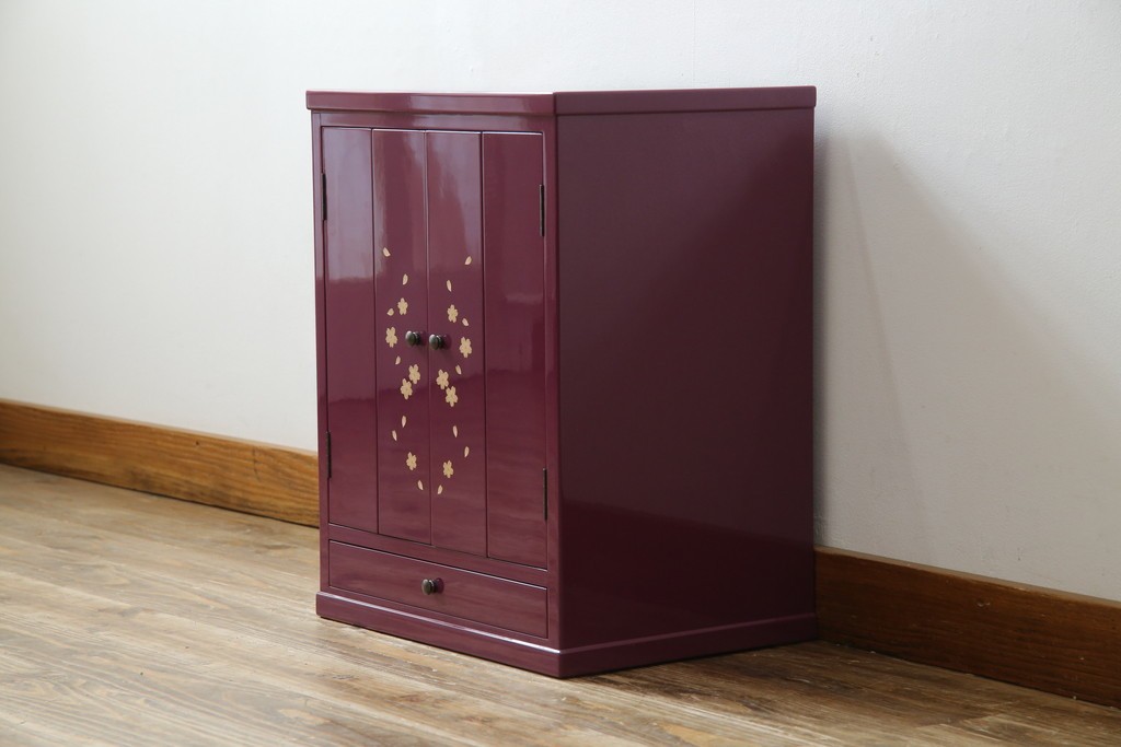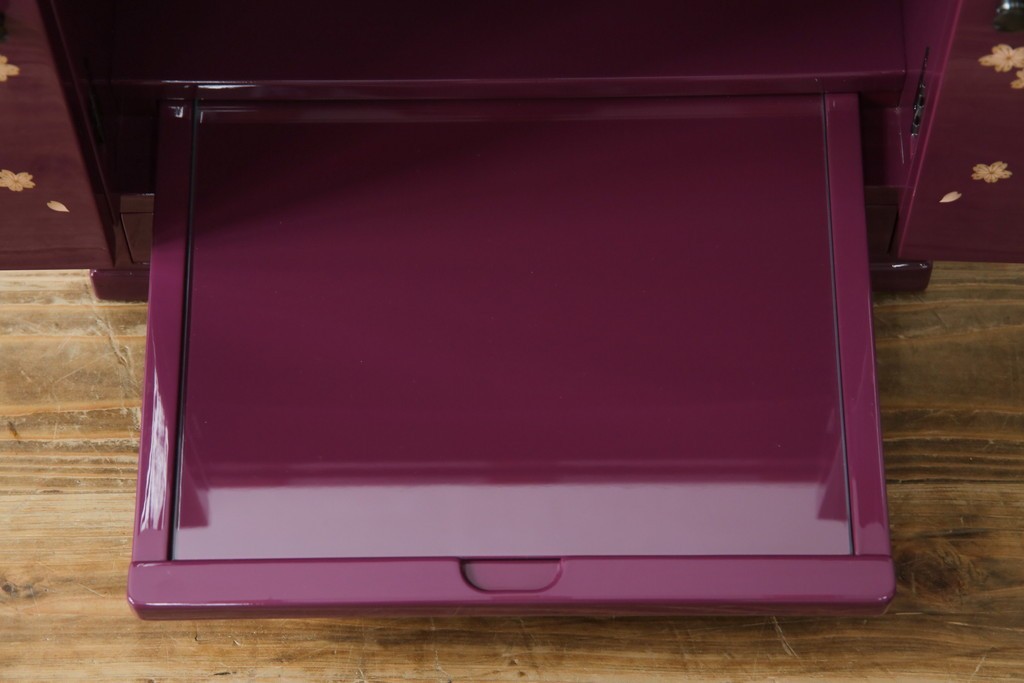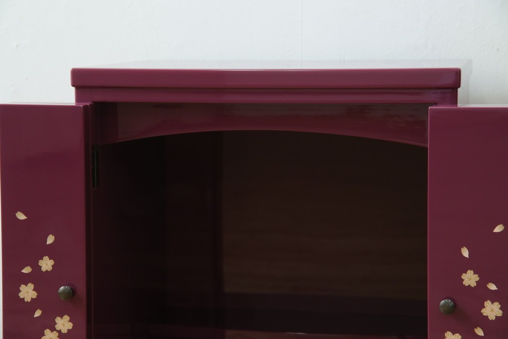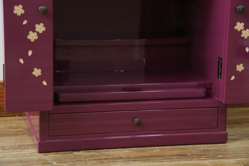 仏壇 > 未使用 展示品 二本松民芸家具 田中家具 気品ある桜のデザインが美しい紫色に映えるモダンデザインの仏壇 定価約36万円相当 (R-081137)