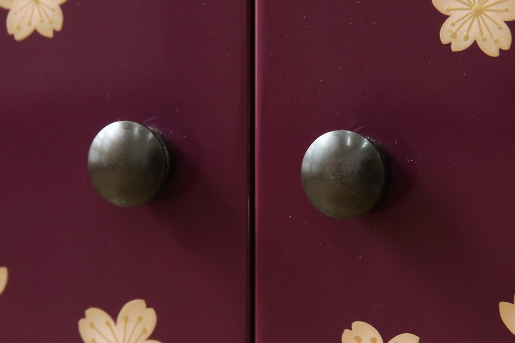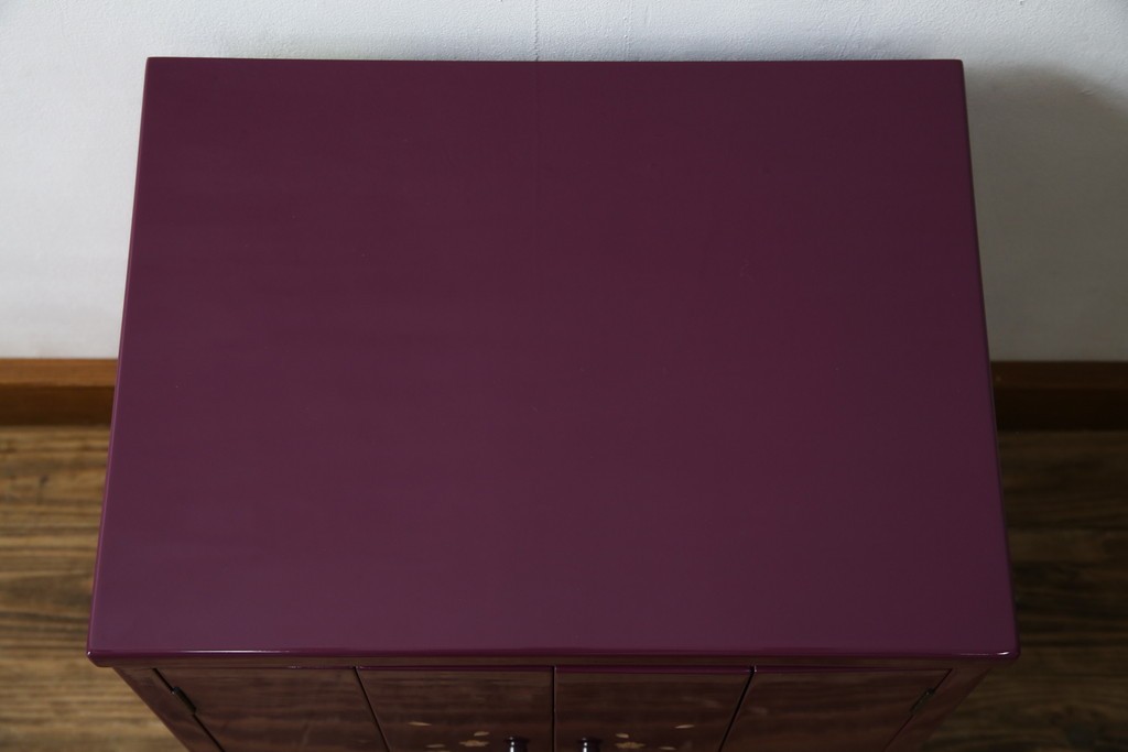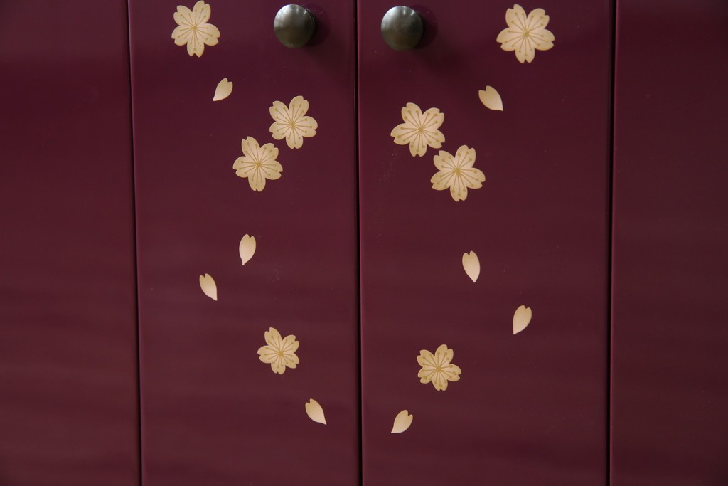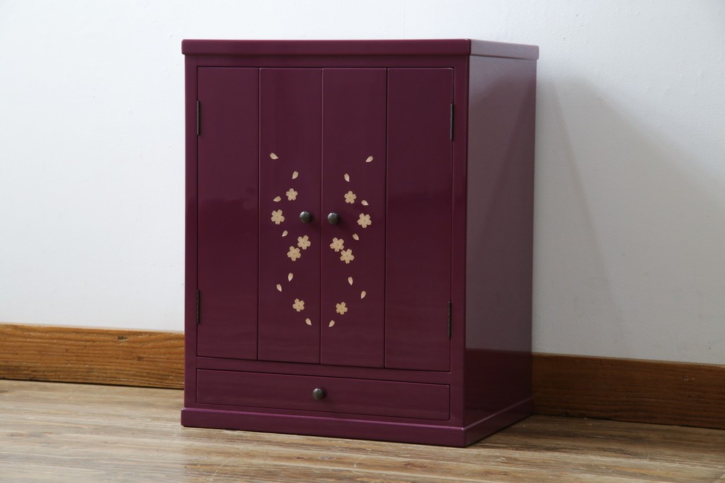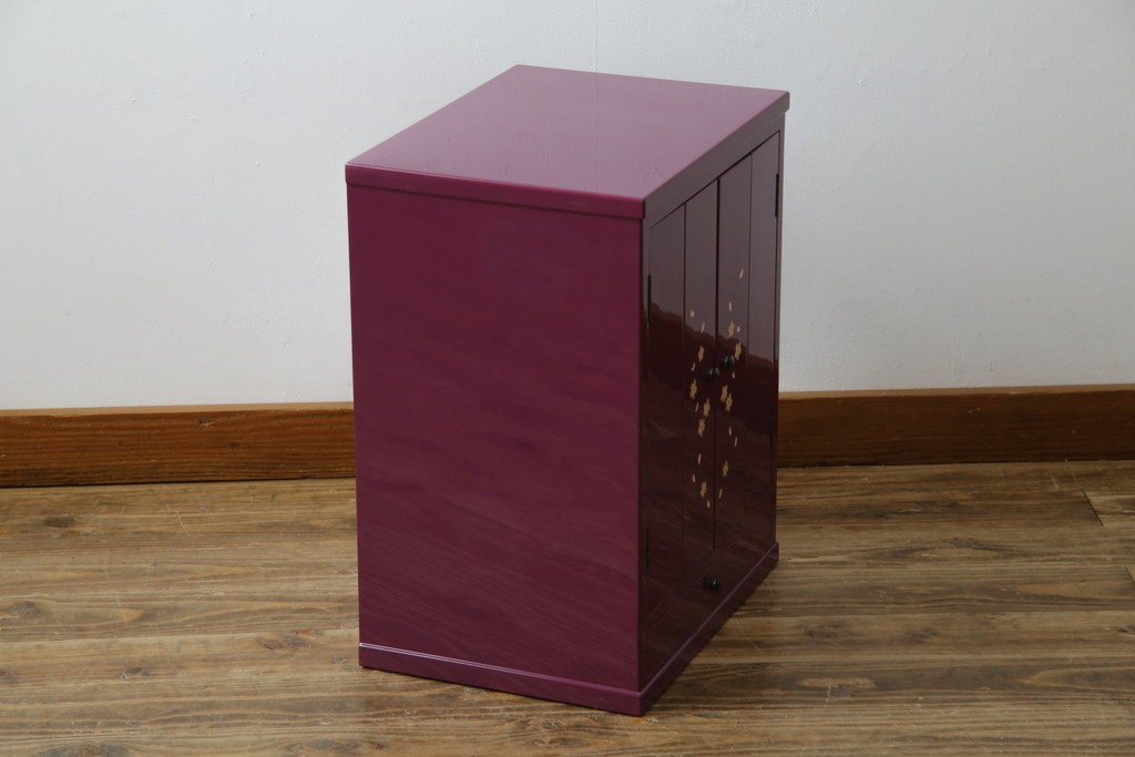 仏壇 > 未使用 展示品 二本松民芸家具 田中家具 気品ある桜のデザインが美しい紫色に映えるモダンデザインの仏壇 定価約36万円相当 (R-081137)