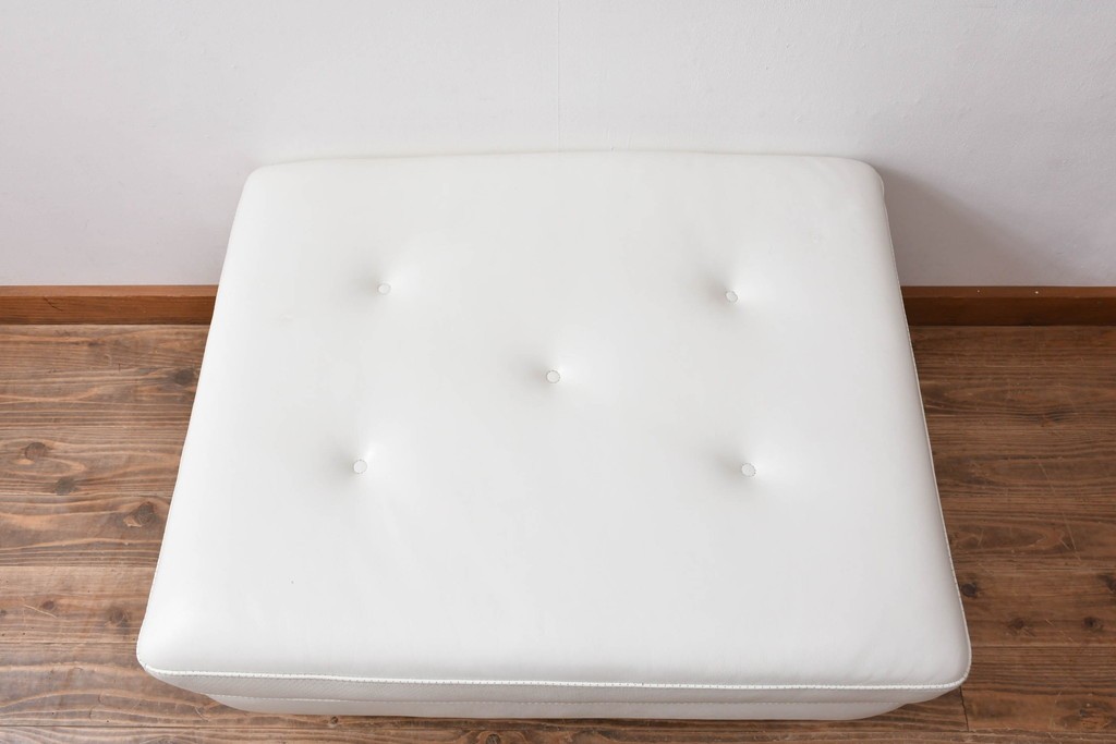 中古 ドイツ 高級家具ブランド Domicil(ドミシール) 本革(レザー) シンプルで使い勝手の良いオットマン(フットスツール) 定価約10万円相当 (R-081170)