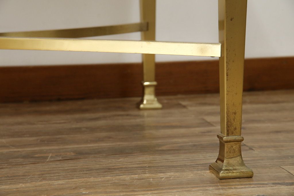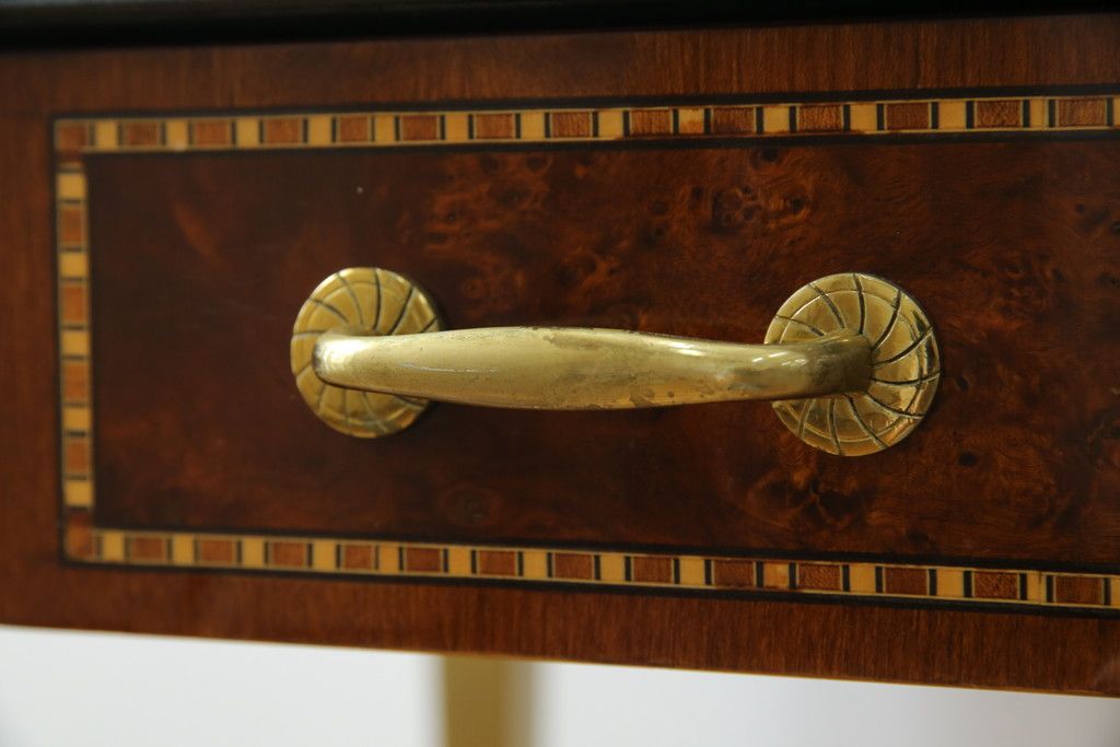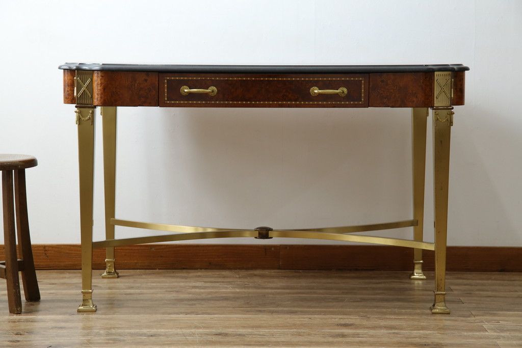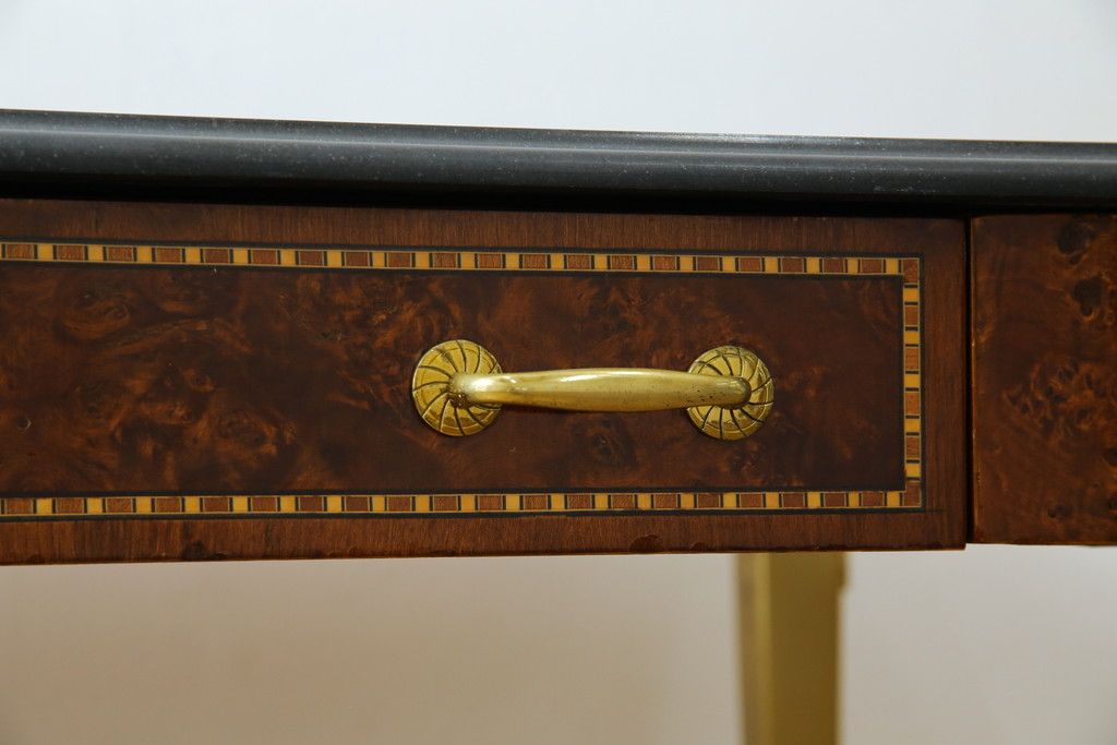 中古 最高級!! イタリア輸入家具 天板黒御影石 マホガニー材 真鍮(しんちゅう)製 上質さが感じられる凝った造り込みが魅力的なデスク(平机、ワークデスク、在宅用、在宅ワーク用)(定価約120万円)(R-081204)