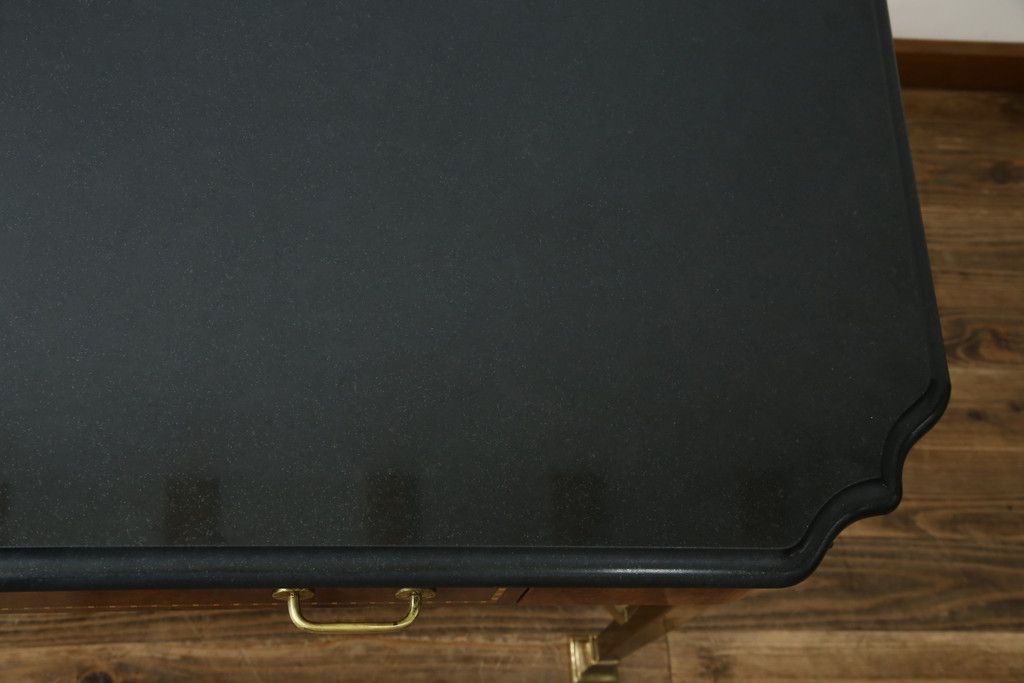 デスク> 平机 > 中古 最高級!! イタリア輸入家具 天板黒御影石 マホガニー材 真鍮(しんちゅう)製 上質さが感じられる凝った造り込みが魅力的なデスク(平机、ワークデスク、在宅用、在宅ワーク用)(定価約120万円)(R-081204)