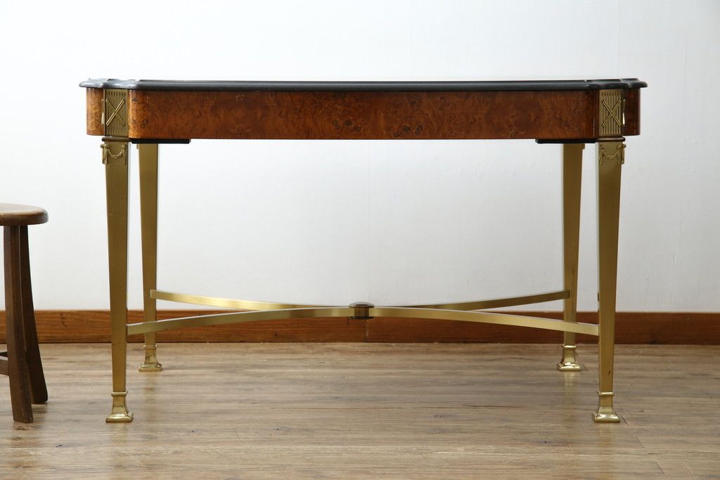 中古 最高級!! イタリア輸入家具 天板黒御影石 マホガニー材 真鍮(しんちゅう)製 上質さが感じられる凝った造り込みが魅力的なデスク(平机、ワークデスク、在宅用、在宅ワーク用)(定価約120万円)(R-081204)です。