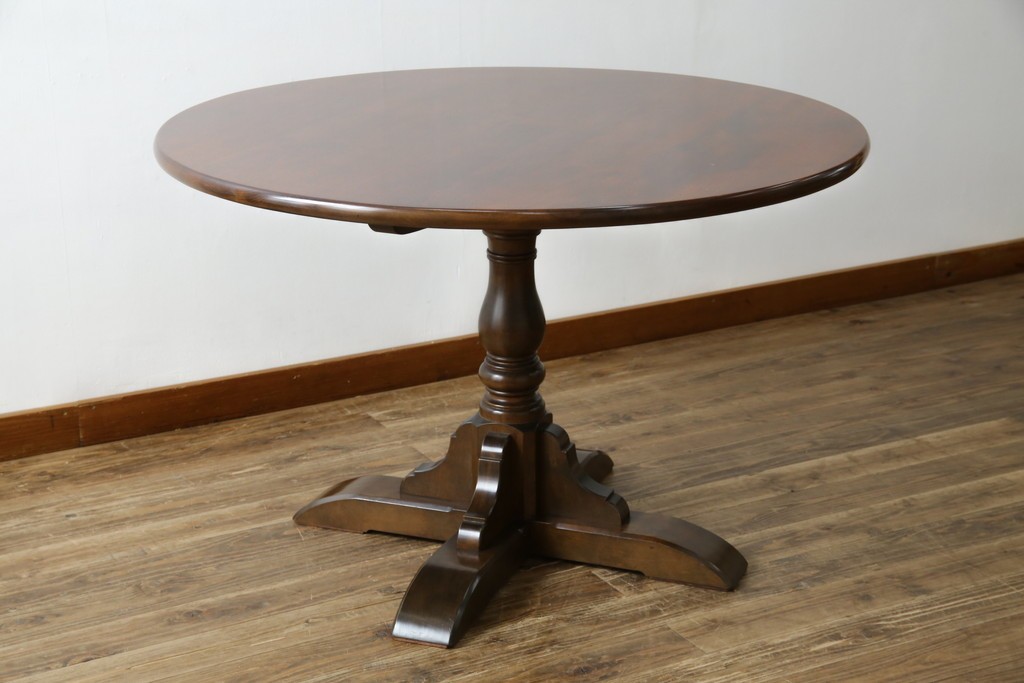 テーブル> 4人用ダイニングテーブル > 中古 美品 松本民芸家具 シックな佇まいがお洒落なラウンドテーブル(ダイニングテーブル、カフェテーブル、食卓、丸テーブル、2人掛け、4人掛け)(R-081244)