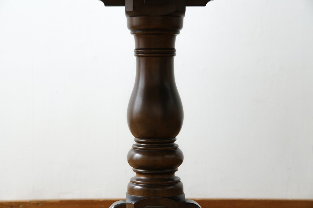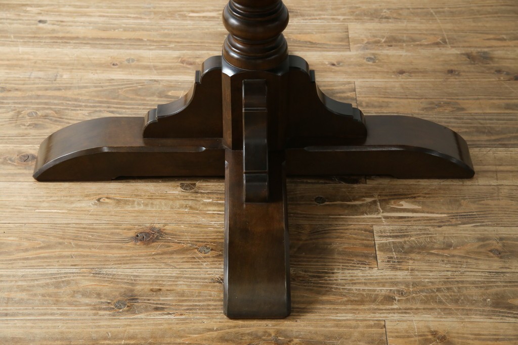 中古 美品 松本民芸家具 シックな佇まいがお洒落なラウンドテーブル(ダイニングテーブル、カフェテーブル、食卓、丸テーブル、2人掛け、4人掛け)(R-081244)