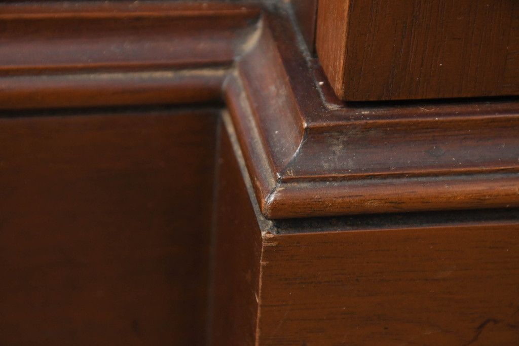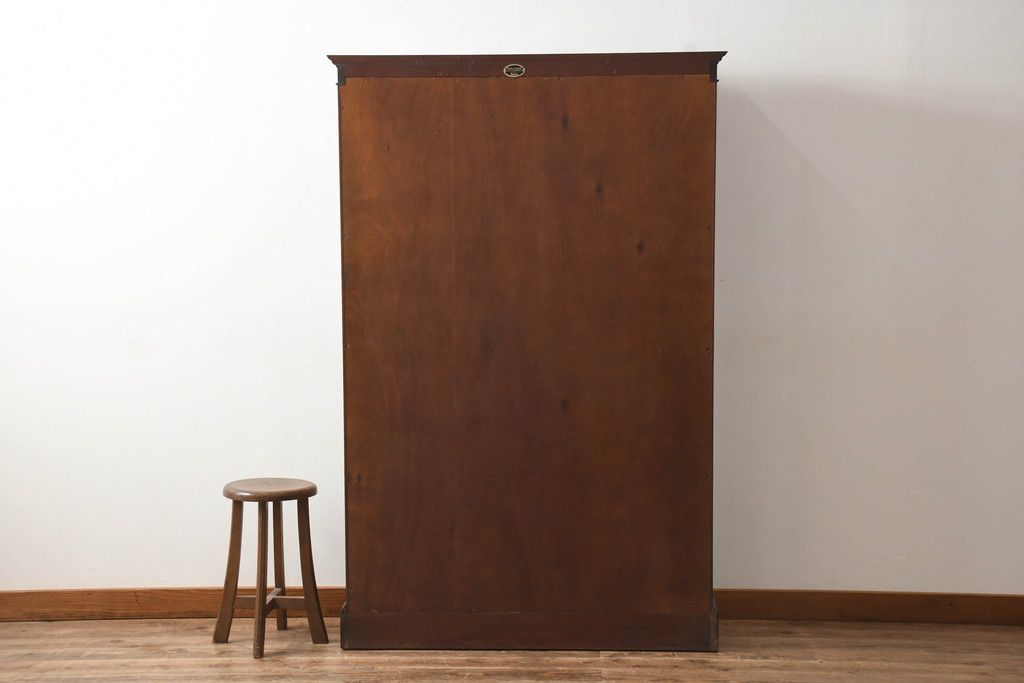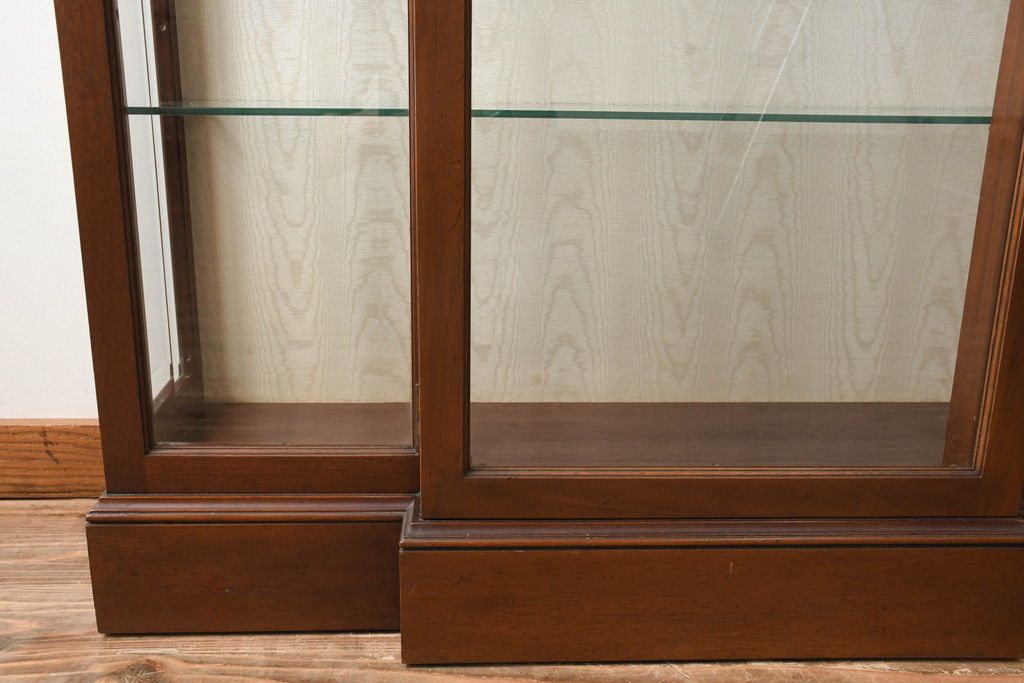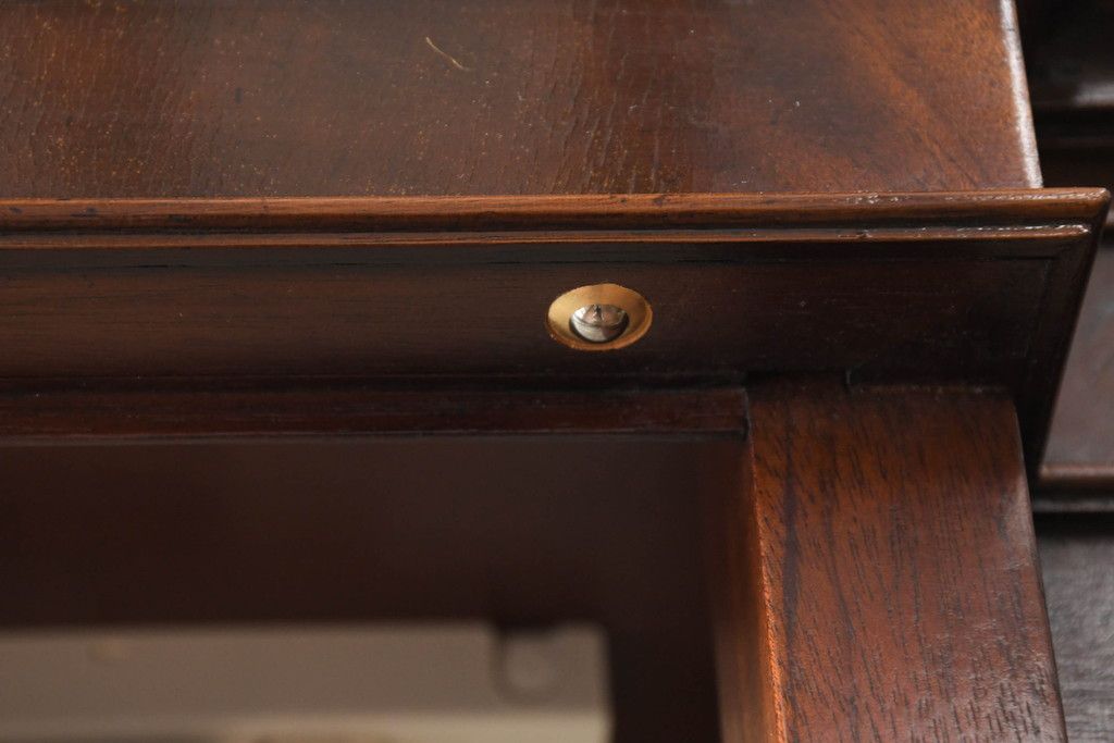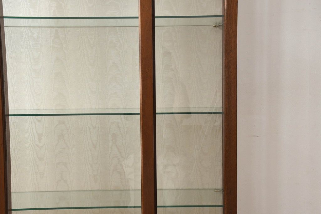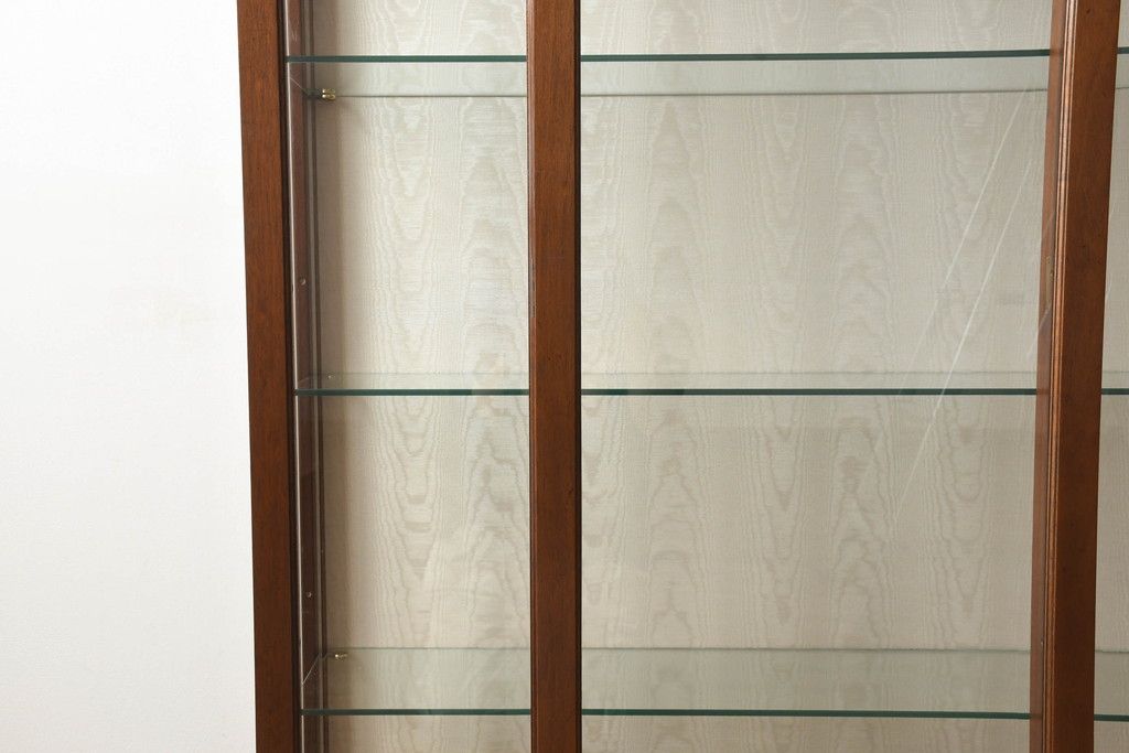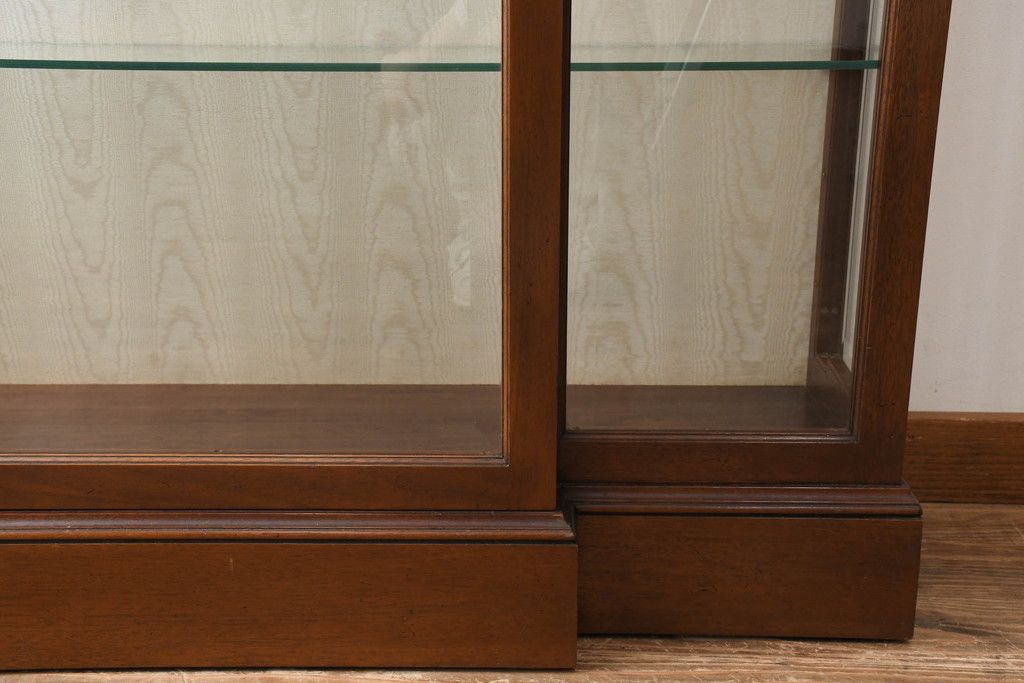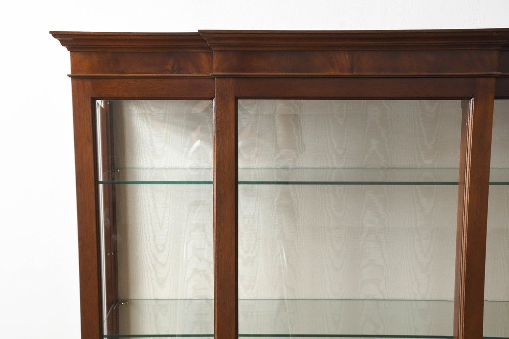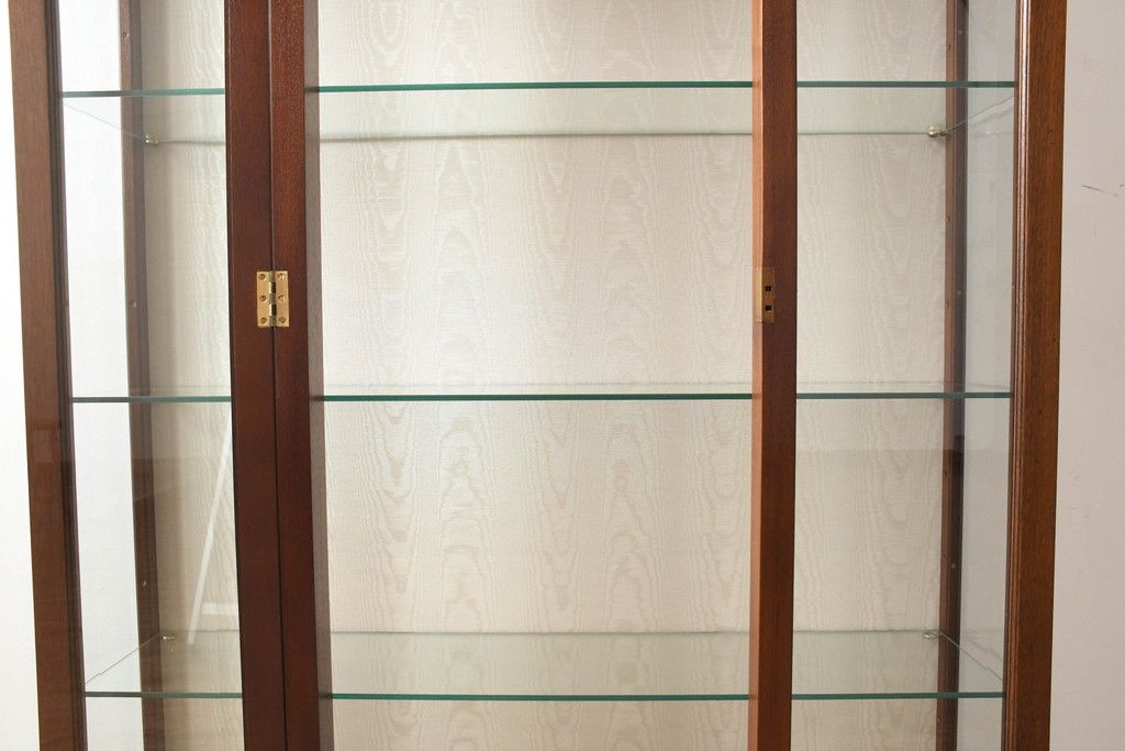 店舗什器 > イギリスビンテージ 美品 高品質の手作り品!! Archer&Smith(アーチャー&スミス) マホガニー材 エレガントなデザインが美しい照明付きの三面ガラスキャビネット(キュリオケース、ガラスケース、ショーケース、コレクションケース、ディスプレイケース、飾り棚、陳列棚、戸棚、収納棚、店舗什器、英国、ヴィンテージ)(R-081245)