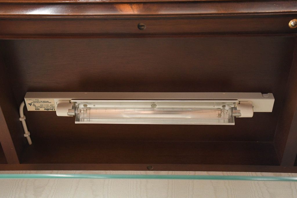 ガラスケース・ショーケース > イギリスビンテージ 美品 高品質の手作り品!! Archer&Smith(アーチャー&スミス) マホガニー材 エレガントなデザインが美しい照明付きの三面ガラスキャビネット(キュリオケース、ガラスケース、ショーケース、コレクションケース、ディスプレイケース、飾り棚、陳列棚、戸棚、収納棚、店舗什器、英国、ヴィンテージ)(R-081245)