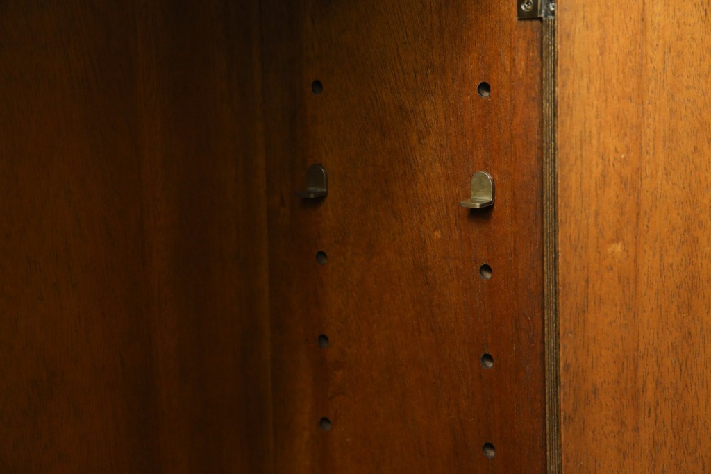 ・棚板は2枚あります。棚受けは7ヶ所、50mmピッチで調整できます。