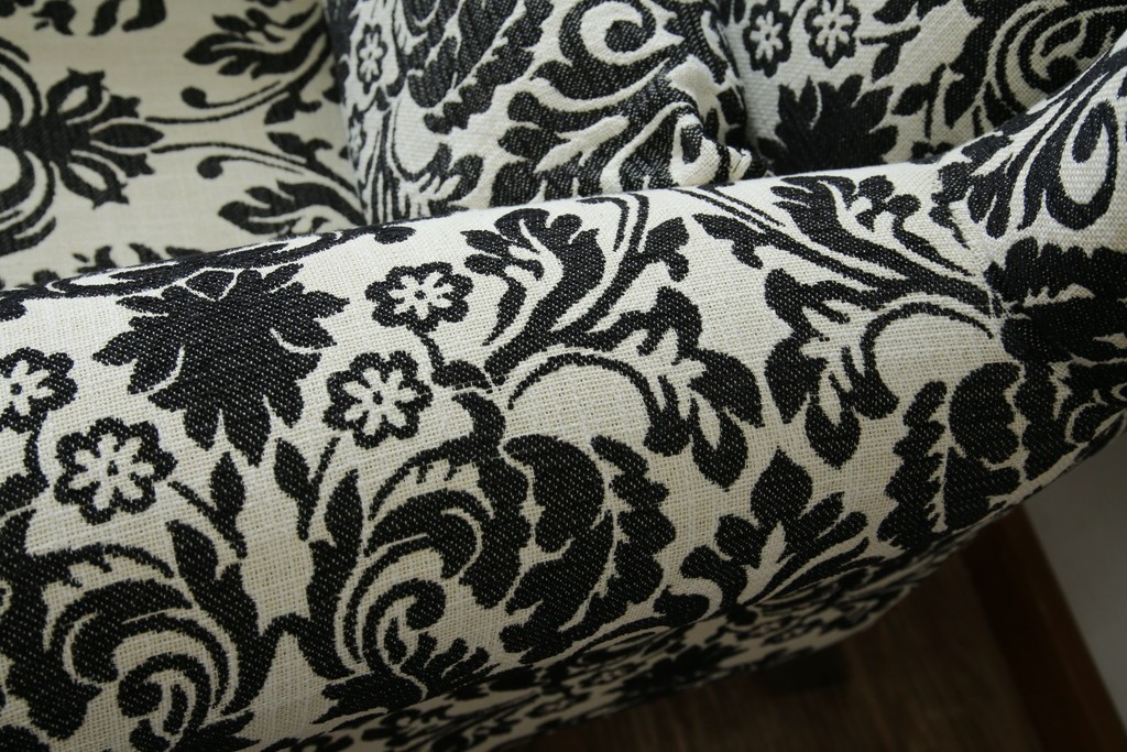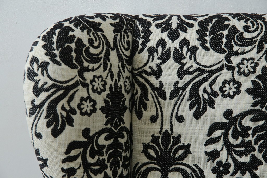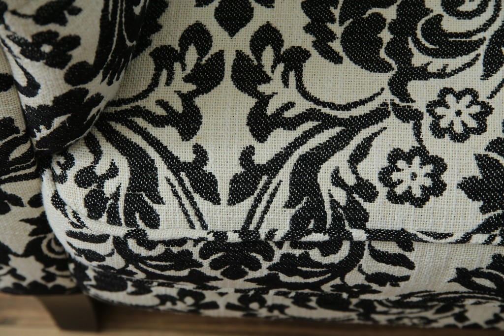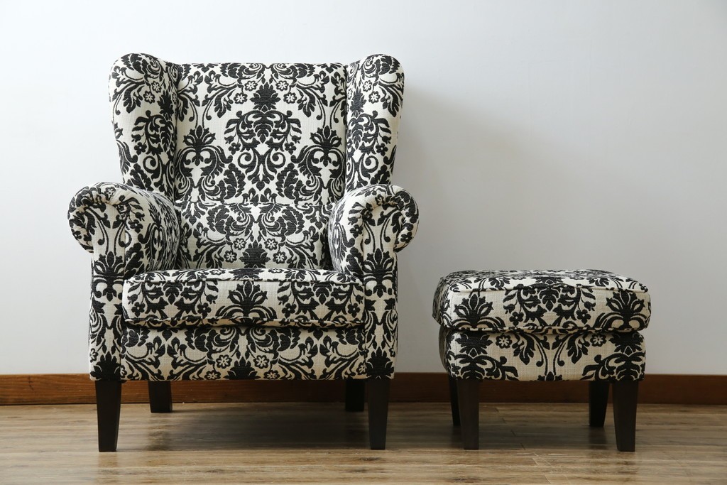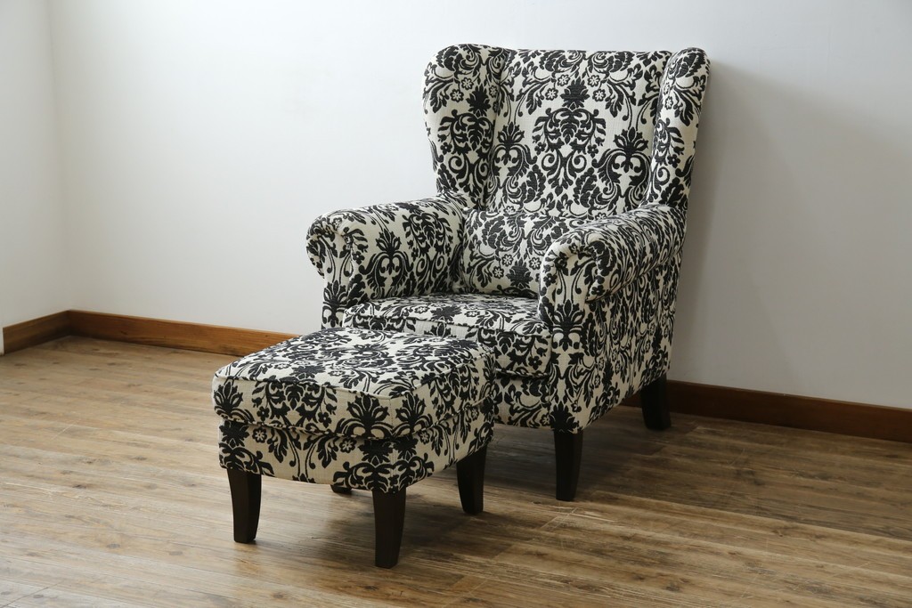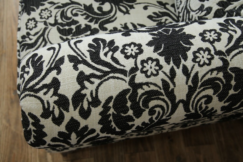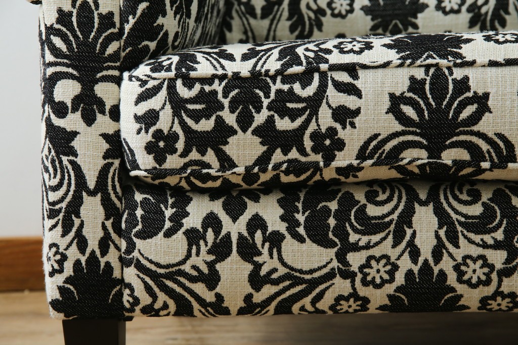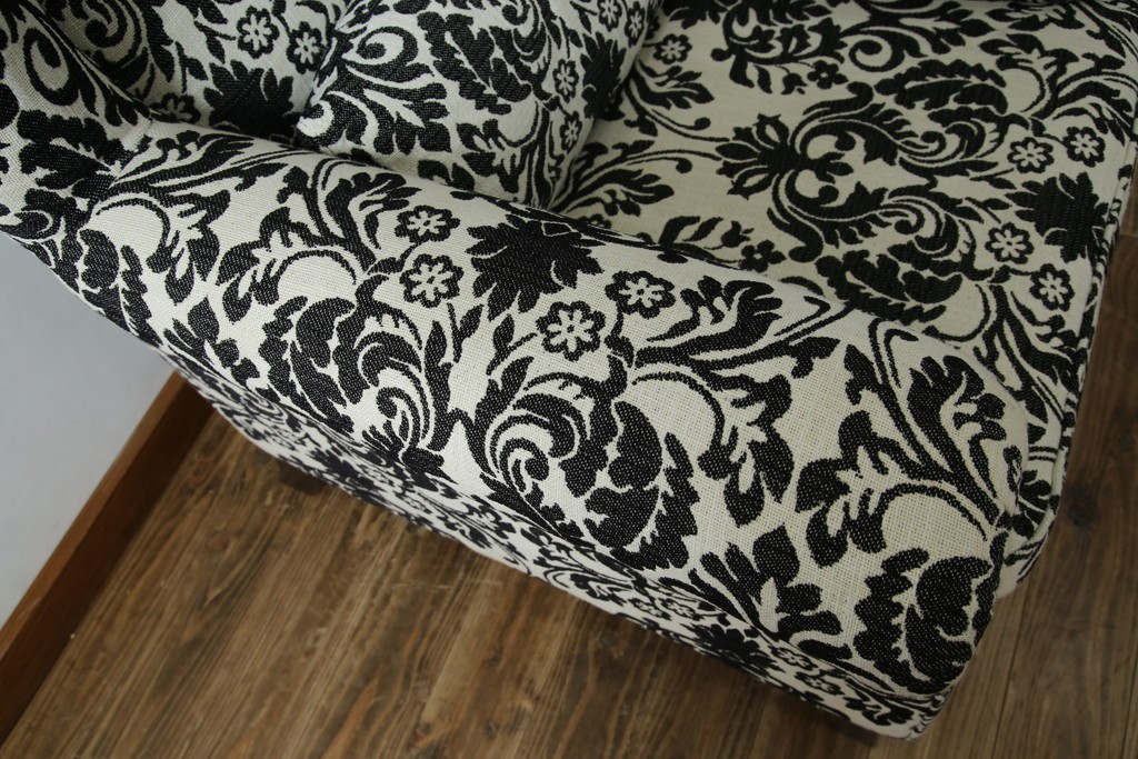 中古 美品 ドイツ Domicil(ドミシール) ダマスク柄がエレガントで洗練された印象を感じさせるアームソファとオットマンセット 定価約23万円相当 (R-081452)