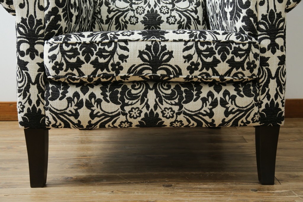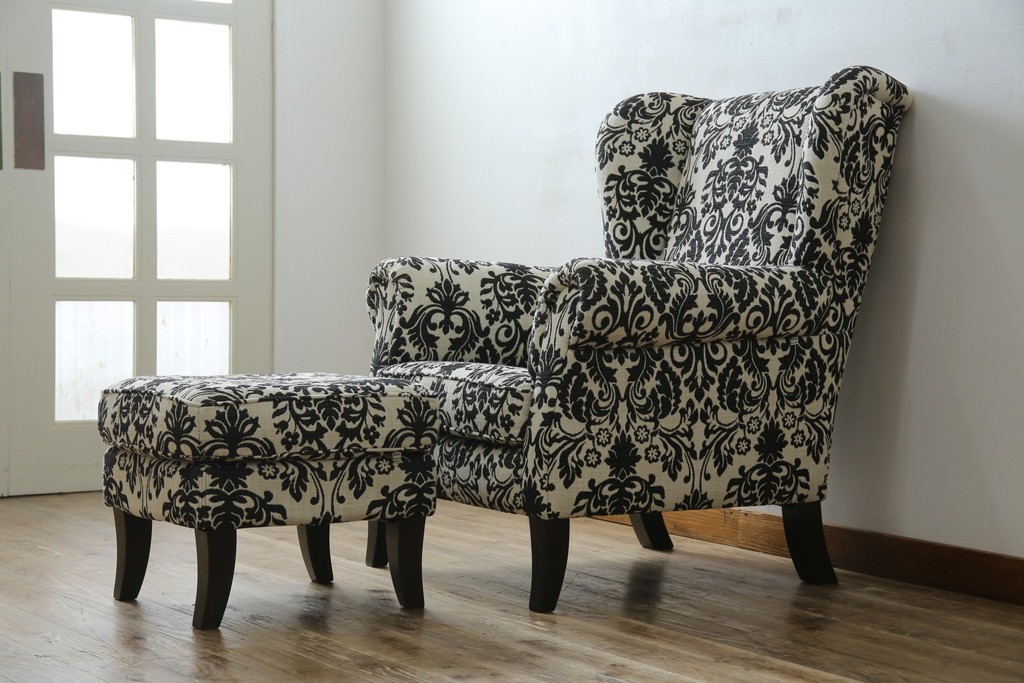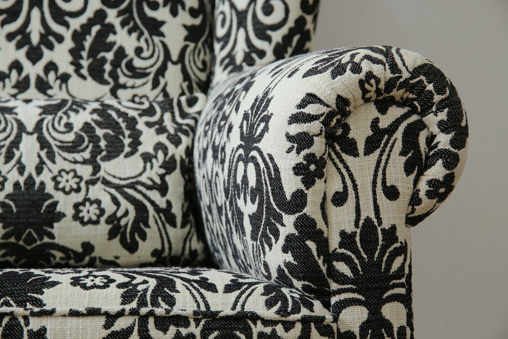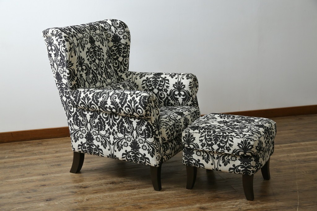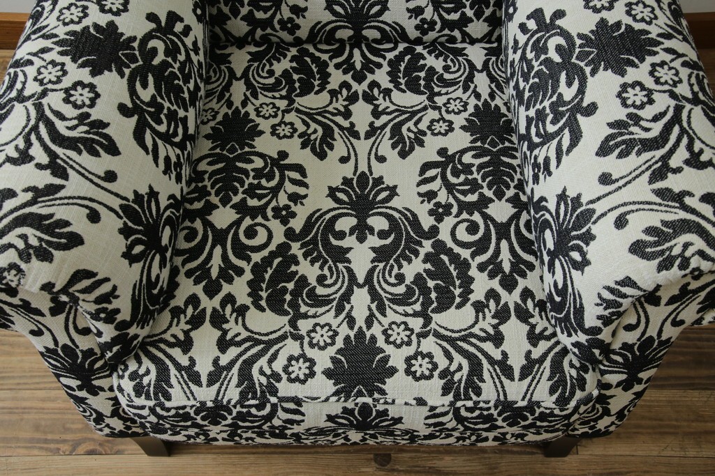 ソファ> 1人掛けソファ > 中古 美品 ドイツ Domicil(ドミシール) ダマスク柄がエレガントで洗練された印象を感じさせるアームソファとオットマンセット 定価約23万円相当 (R-081452)