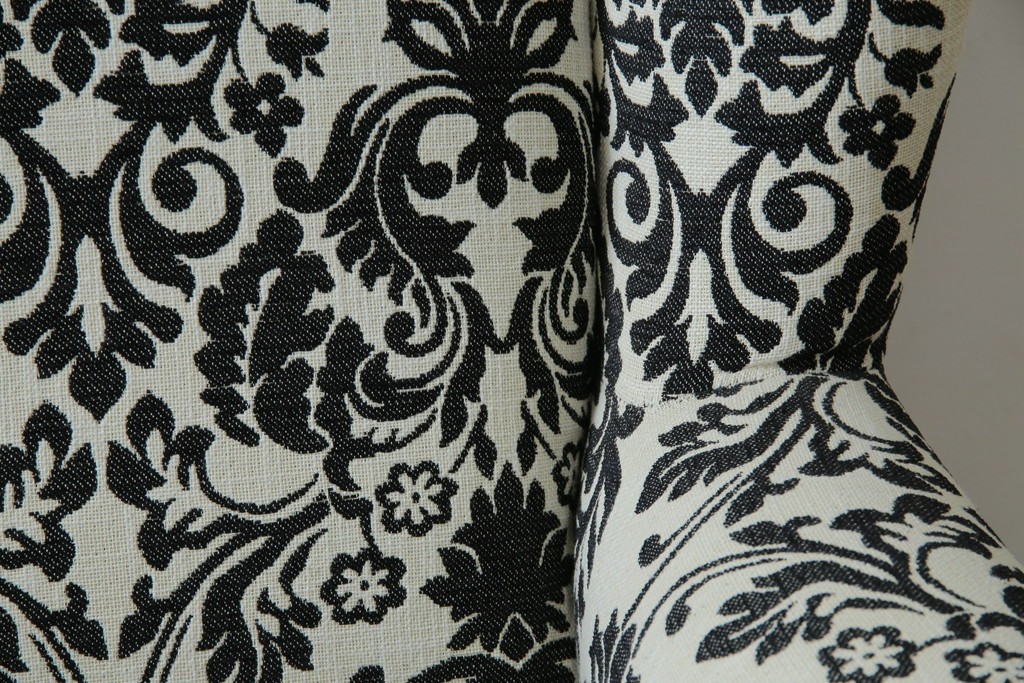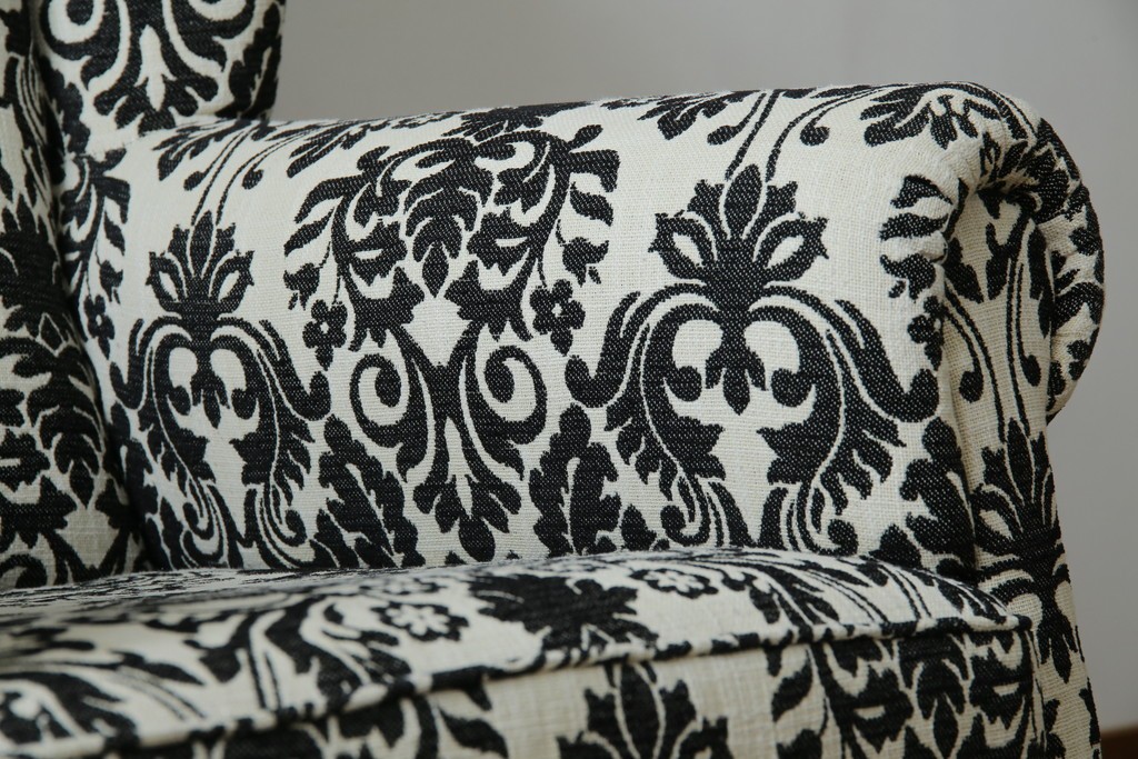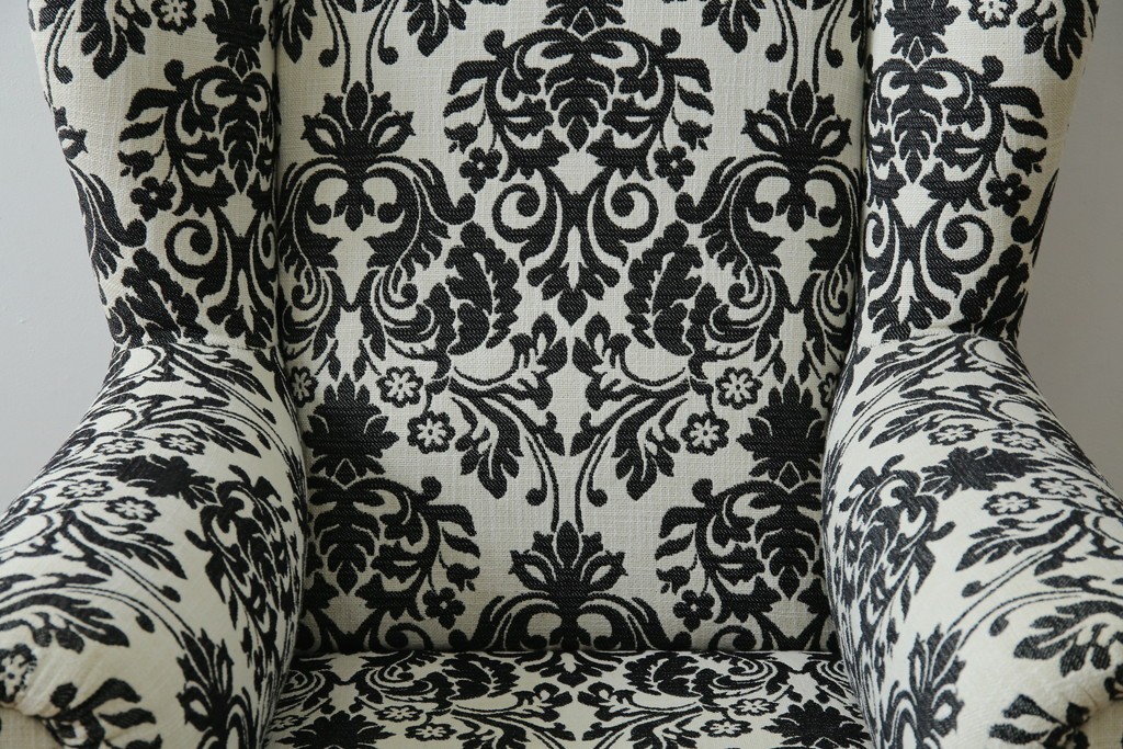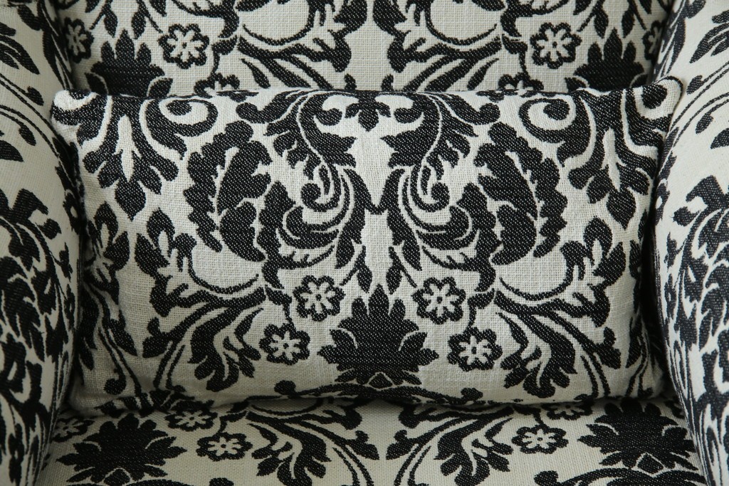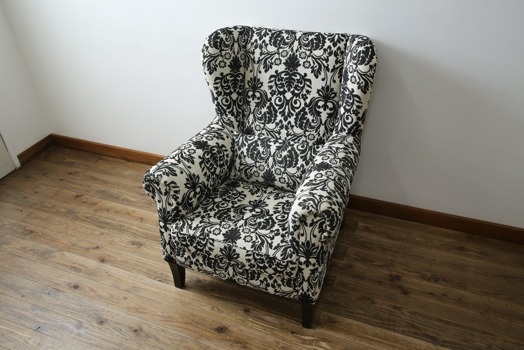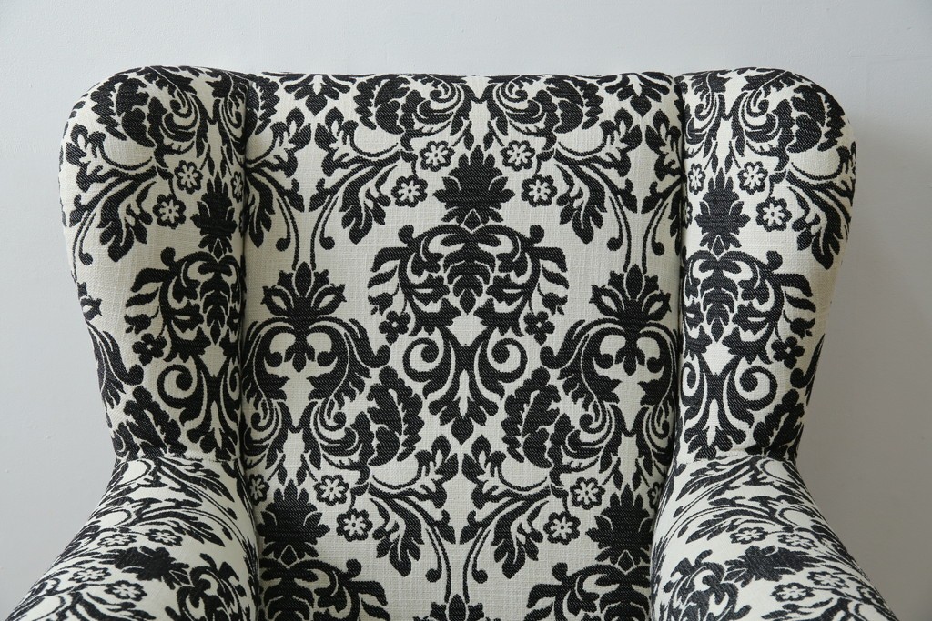 ソファ> 1人掛けソファ > 中古 美品 ドイツ Domicil(ドミシール) ダマスク柄がエレガントで洗練された印象を感じさせるアームソファとオットマンセット 定価約23万円相当 (R-081452)