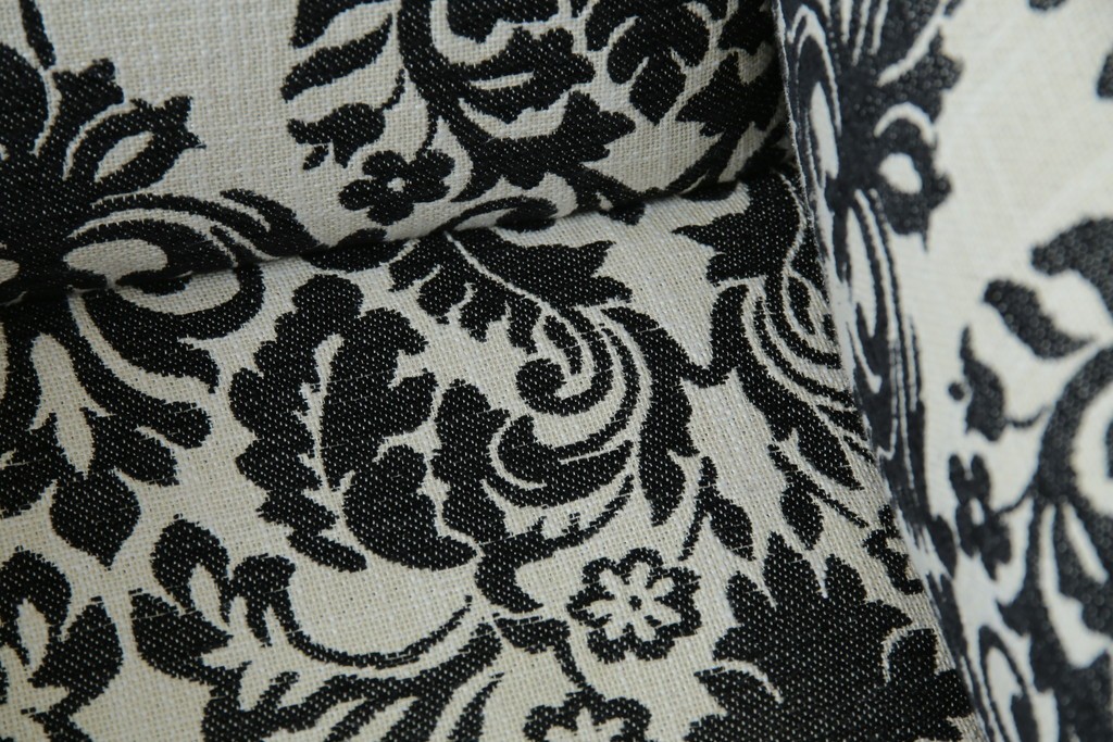 ソファ> オットマン > 中古 美品 ドイツ Domicil(ドミシール) ダマスク柄がエレガントで洗練された印象を感じさせるアームソファとオットマンセット 定価約23万円相当 (R-081452)