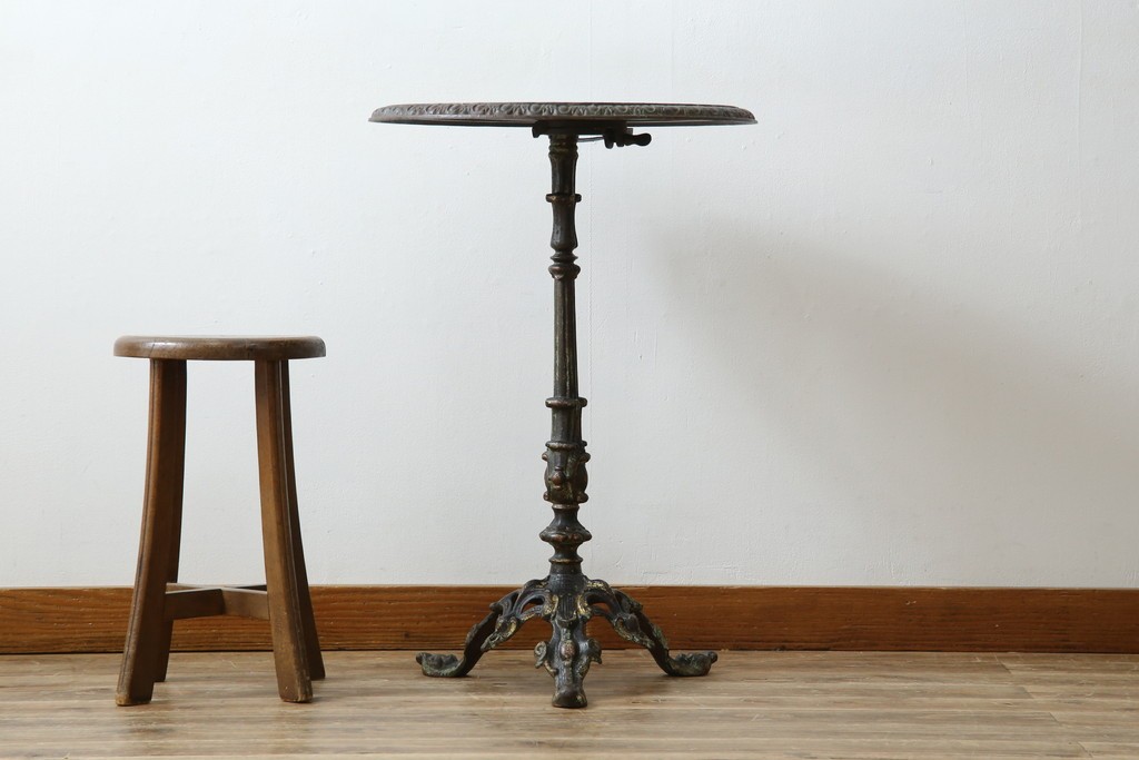 花台・飾り台 > フランスアンティーク ミラー天板 鋳物アイアンフレーム チルトアップ 上品な曲線のデザインが目を引くコーヒーテーブル (R-081554)