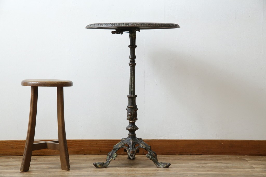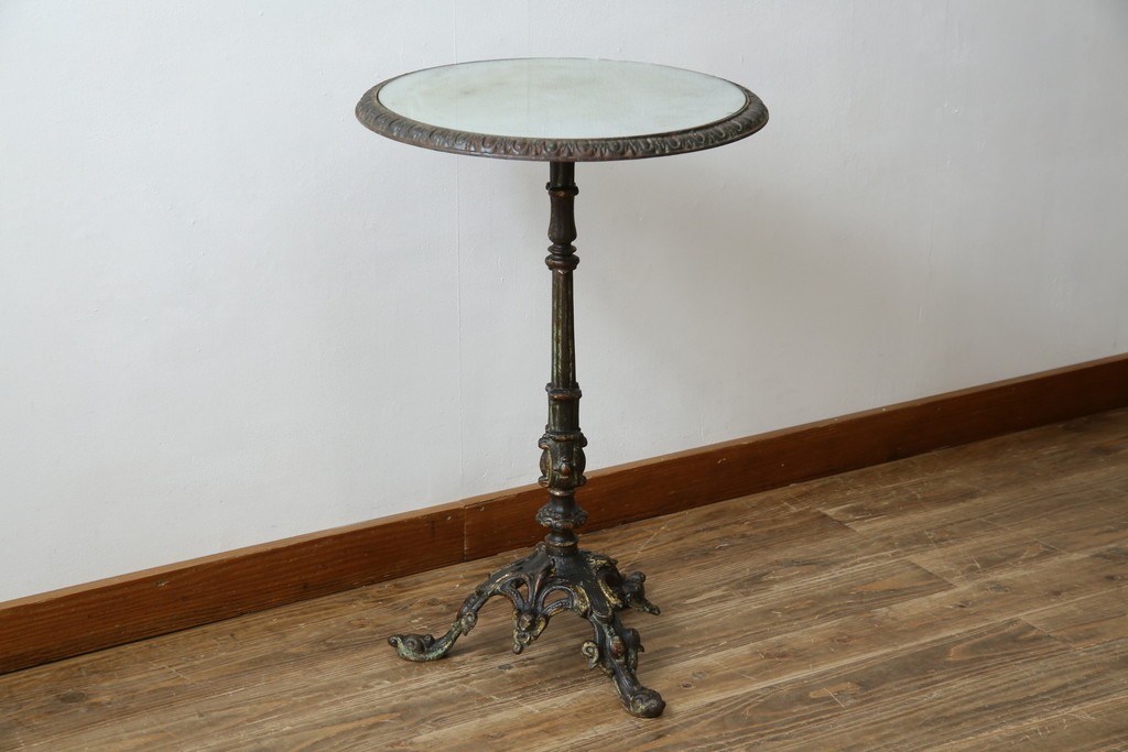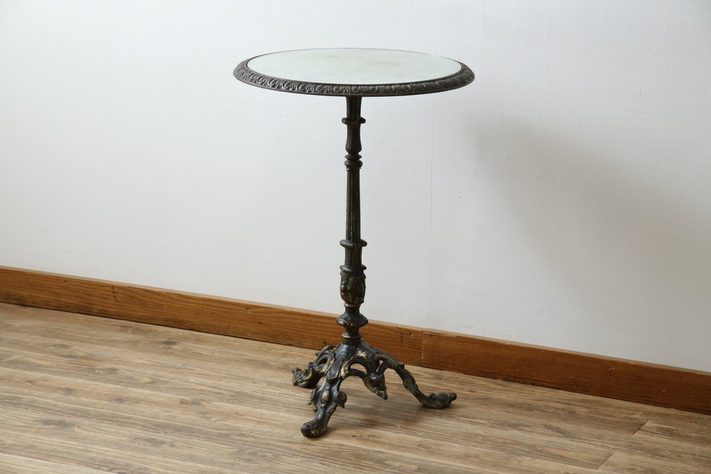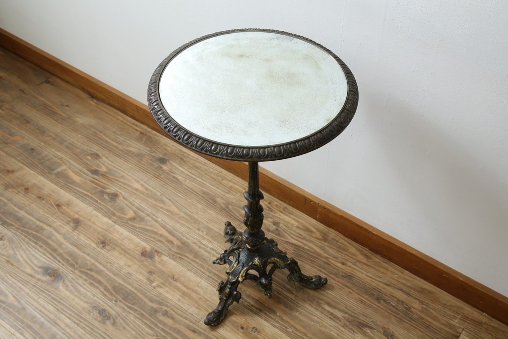 テーブル> サイドテーブル > フランスアンティーク ミラー天板 鋳物アイアンフレーム チルトアップ 上品な曲線のデザインが目を引くコーヒーテーブル (R-081554)