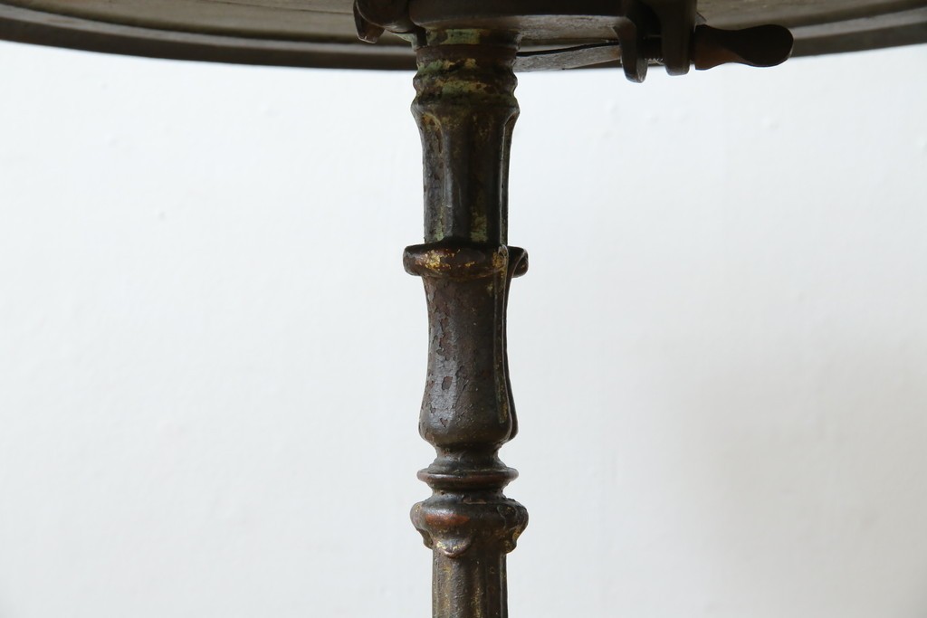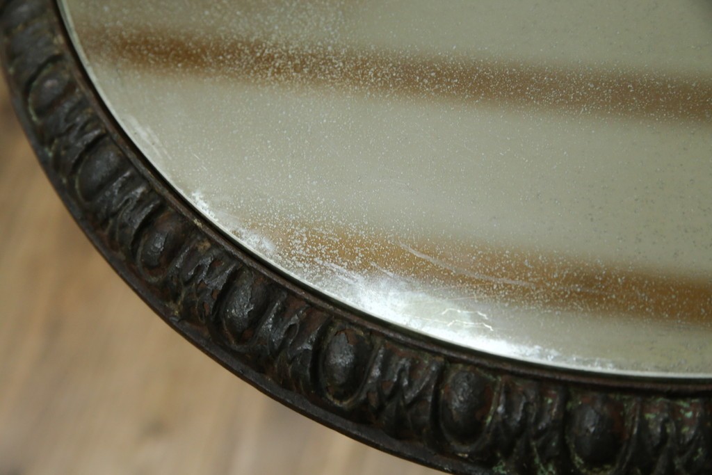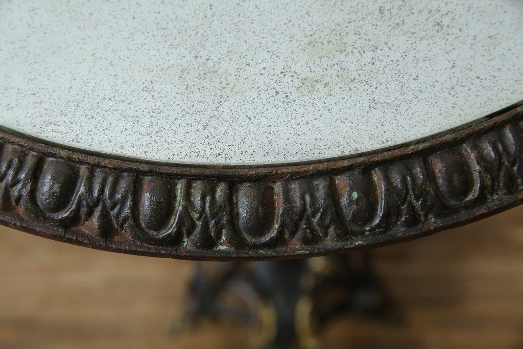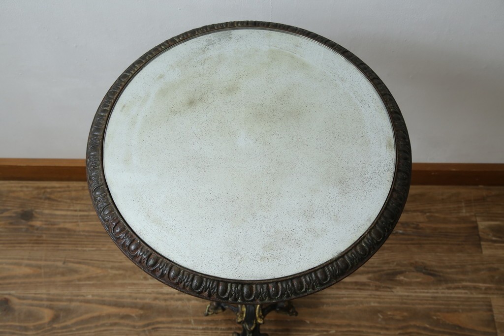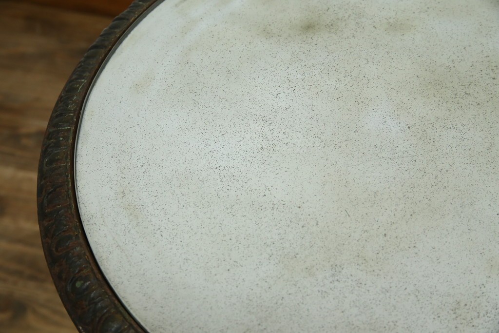 テーブル> 丸テーブル > フランスアンティーク ミラー天板 鋳物アイアンフレーム チルトアップ 上品な曲線のデザインが目を引くコーヒーテーブル (R-081554)