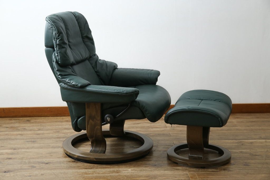 ラフジュ工房> 椅子・ベンチ> スツール > 中古 EKORNES(エコーネス) 本革(レザー) オットマン付き ロングセラー!!一番人気のストレスレス レノ クラシック(S)(アームチェア、リクライニングチェア、椅子、一人掛けソファ、1Pソファ)(定価約45万円)(R-081615)