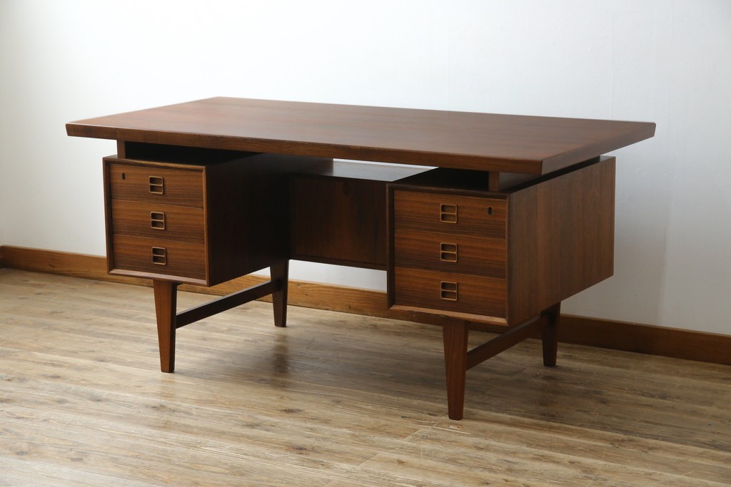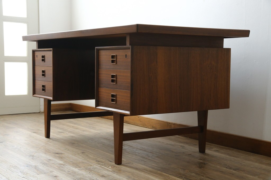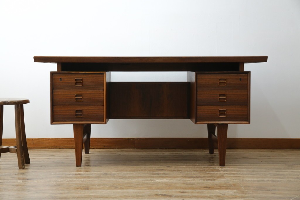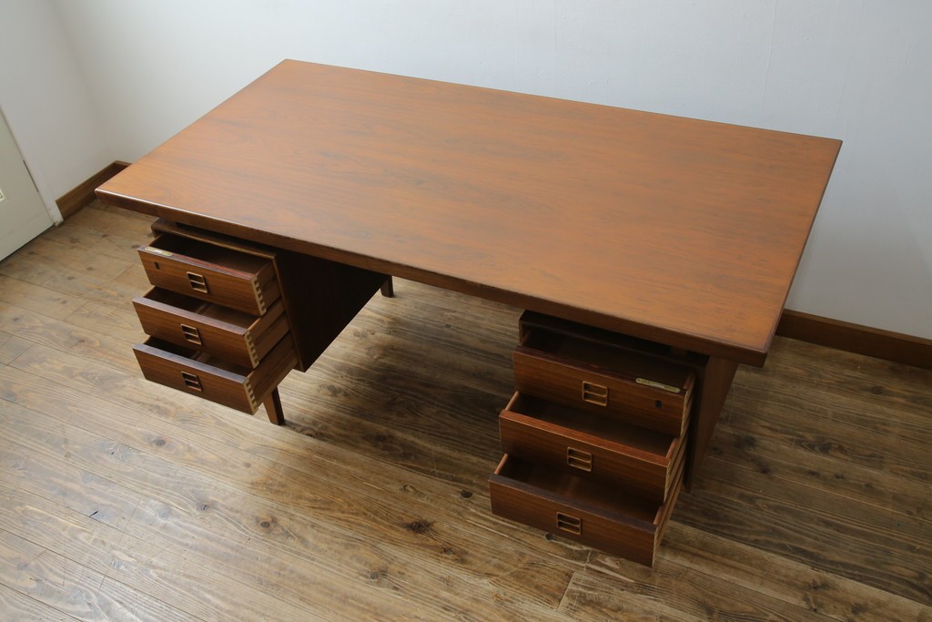 デスク> ワークデスク > 北欧ビンテージ 美品 温もり溢れるローズウッド材のパートナーデスク(ワークデスク、在宅ワーク、在宅用、オフィスデスク、両袖机、ヴィンテージ)(R-081625)
