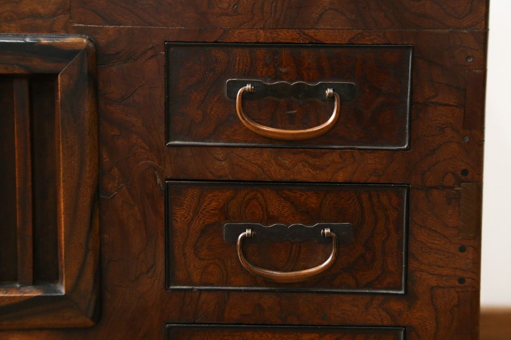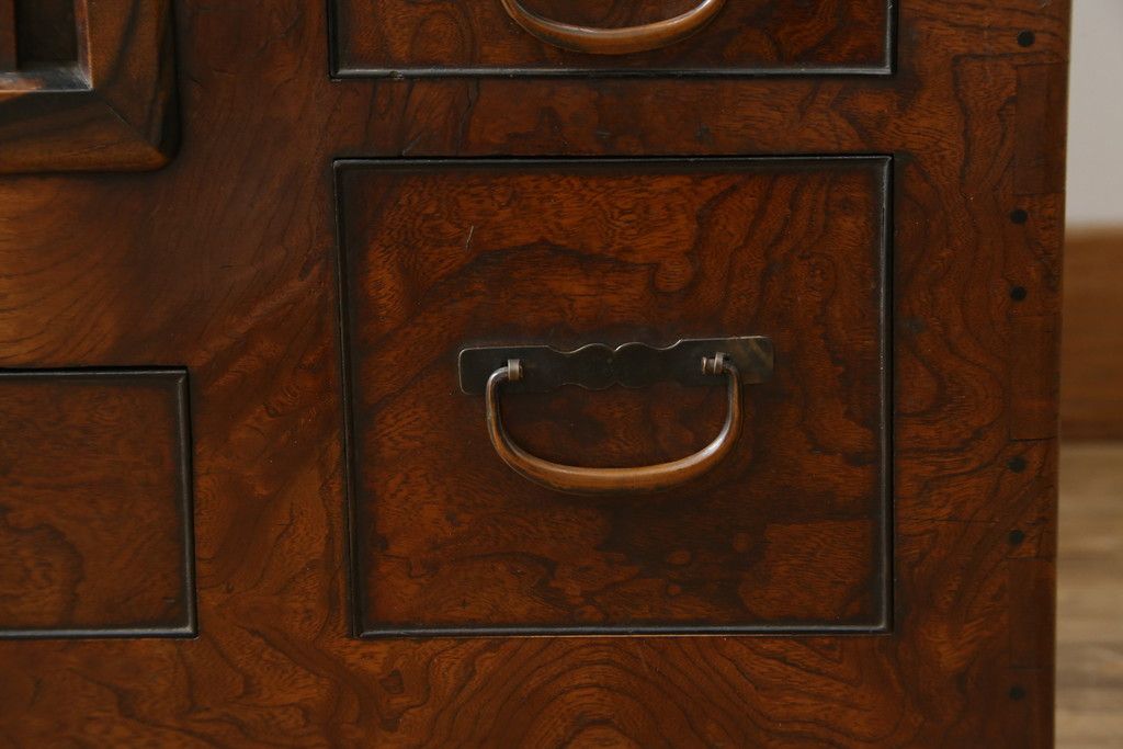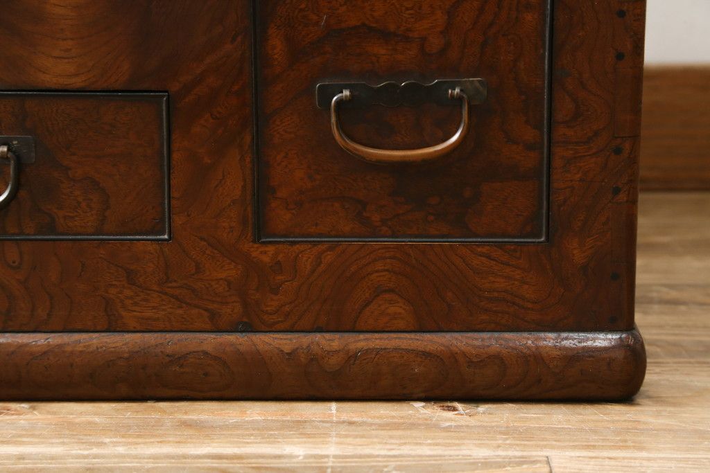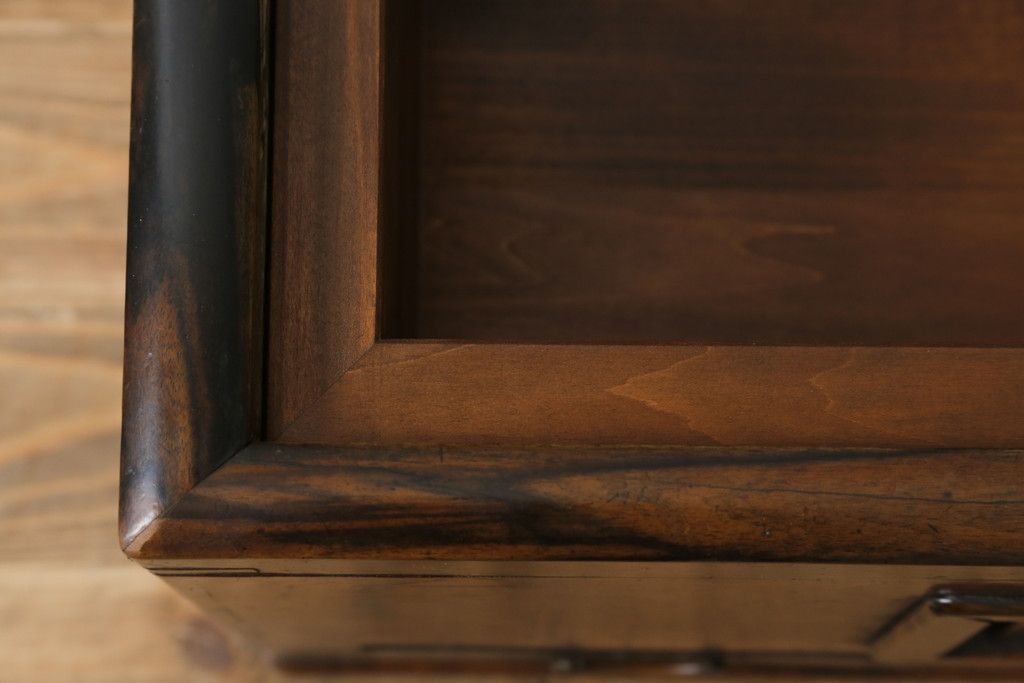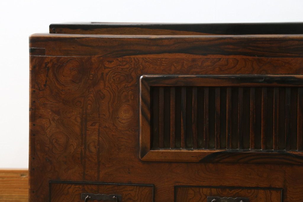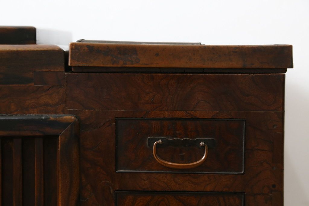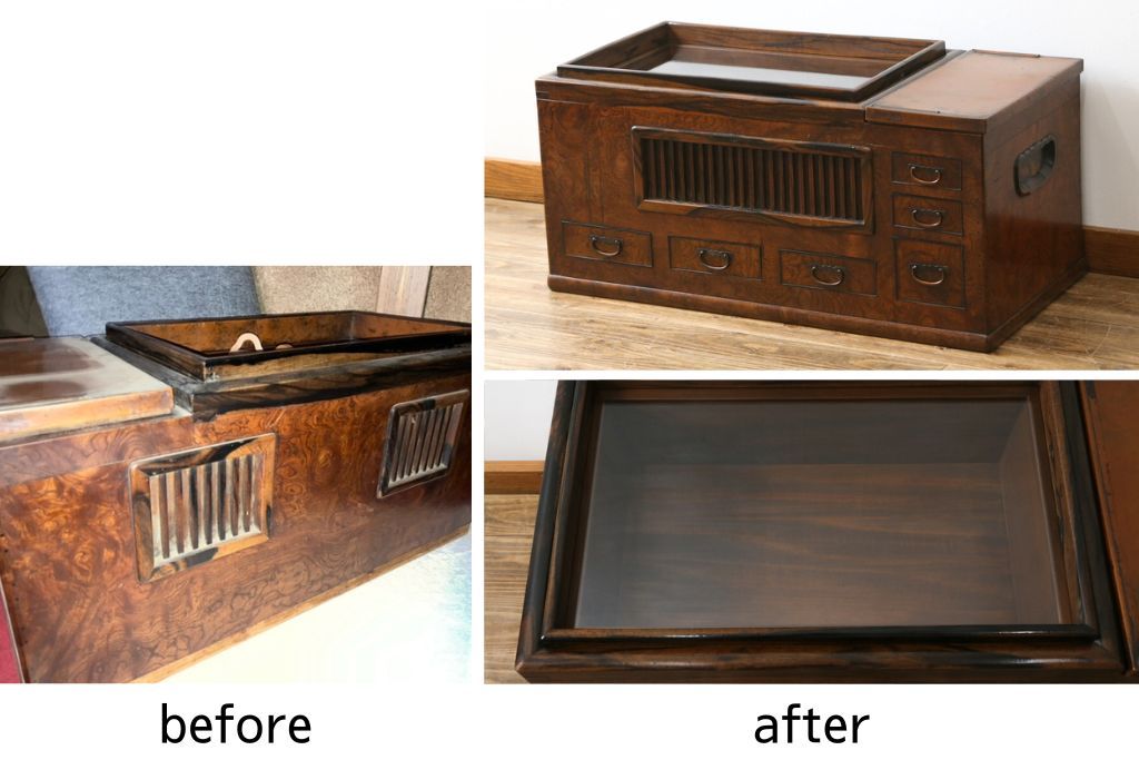 ・下部の欠損箇所・角の欠けている部分・猫板の割れは木目の近しい材で新しく製作、または埋木等をして綺麗に