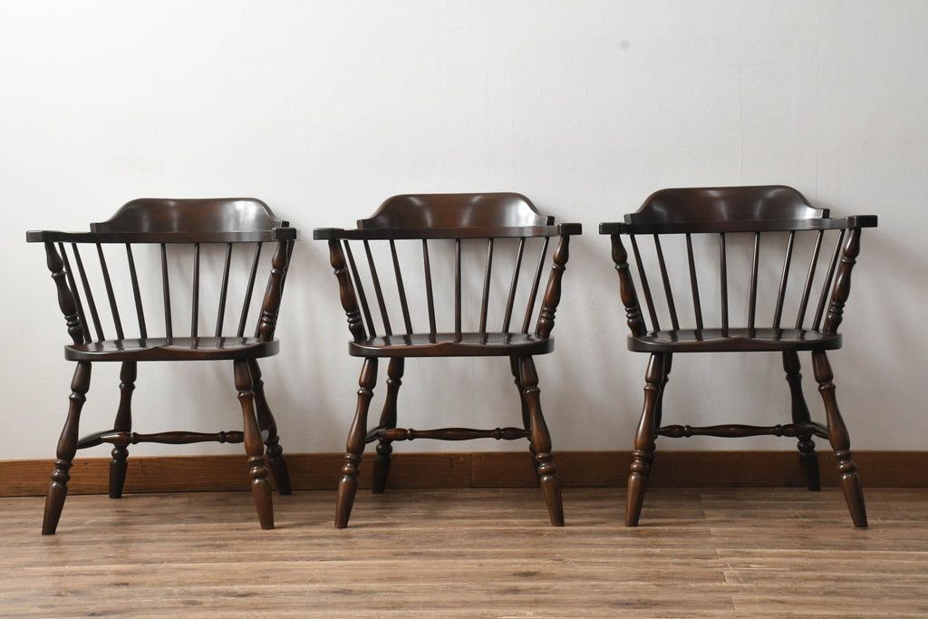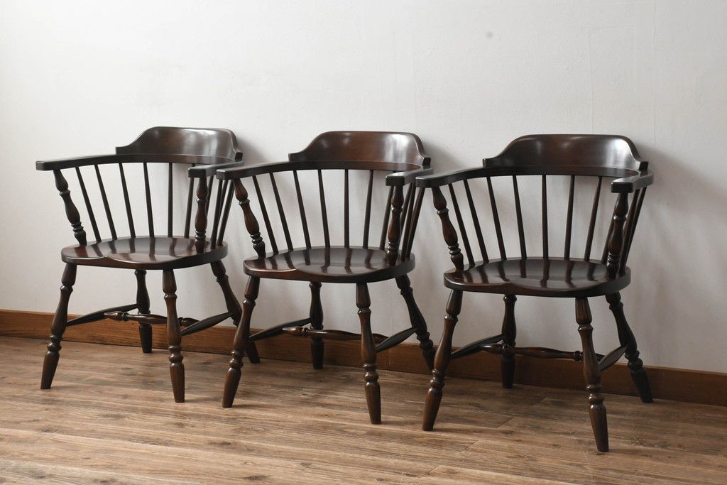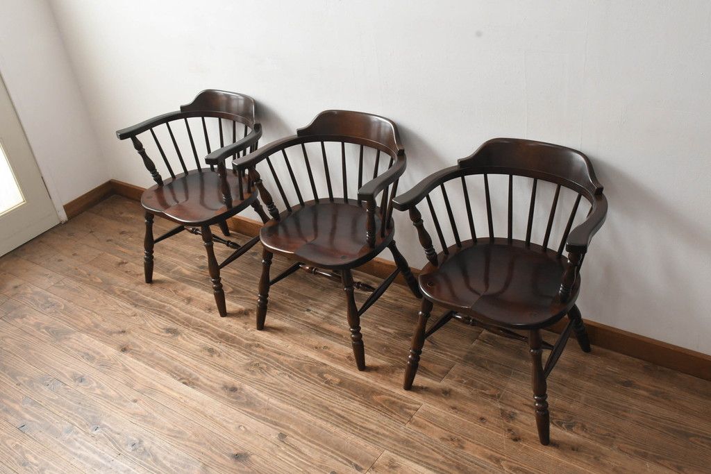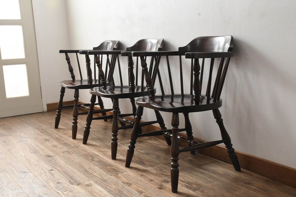 ラフジュ工房> 民芸家具 > 和製ビンテージ 松本民芸家具 #91型 落ち着きのある大人カフェ風インテリアが叶うキャプテンチェア3脚セット(アームチェア、板座チェア、ダイニングチェア、椅子、イス、ヴィンテージ、バラ売り可能)(定価3脚で約39万円)(R-081735)