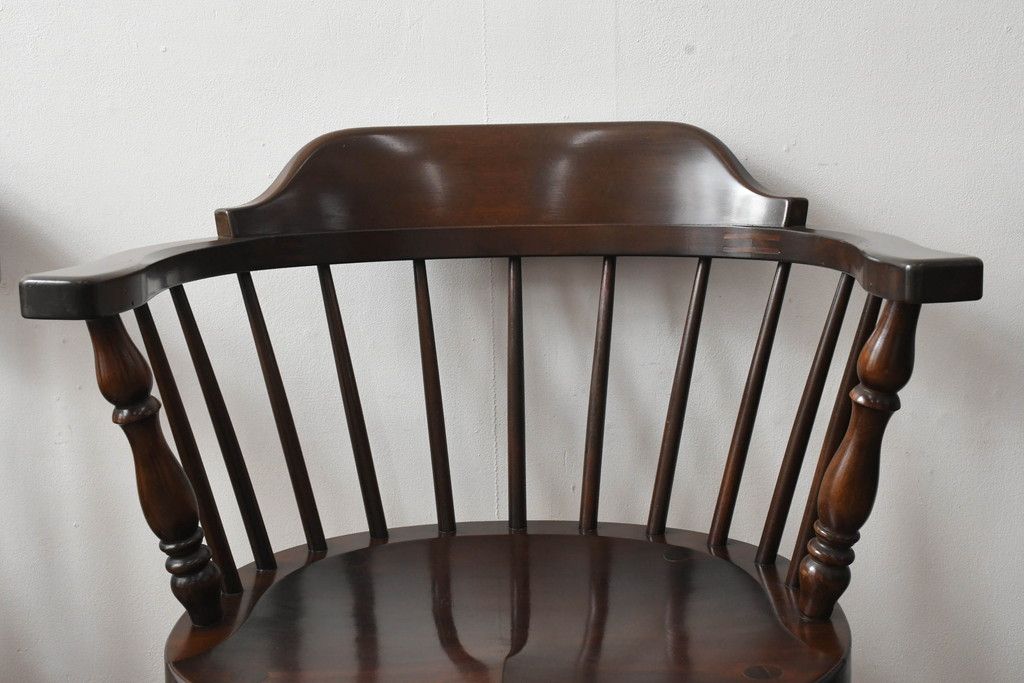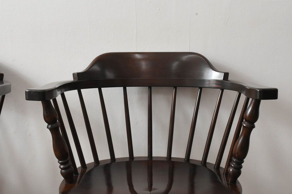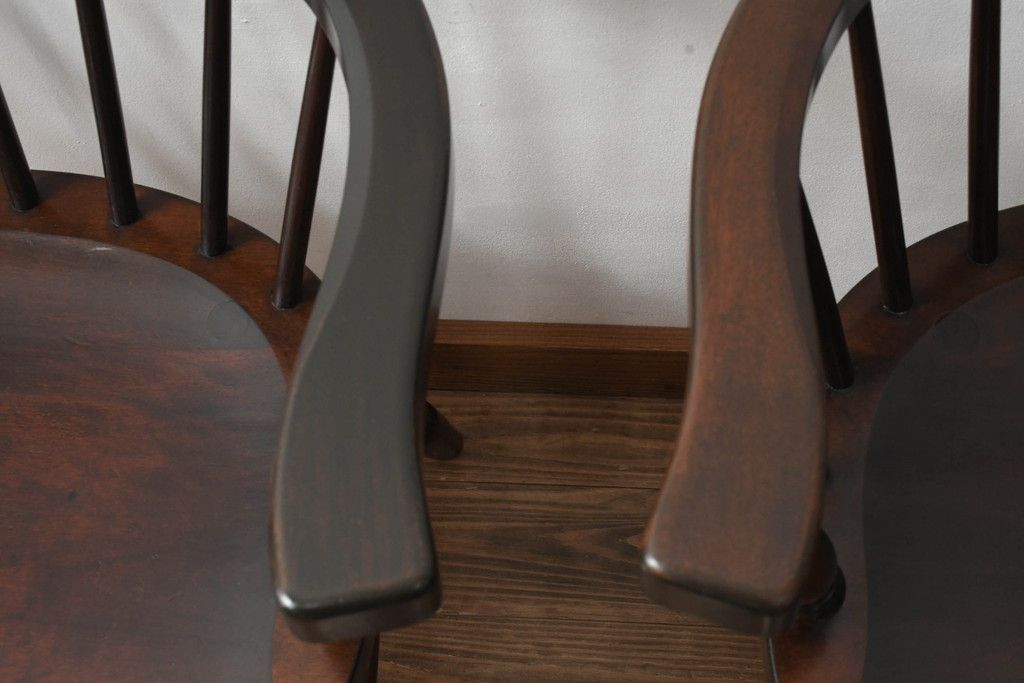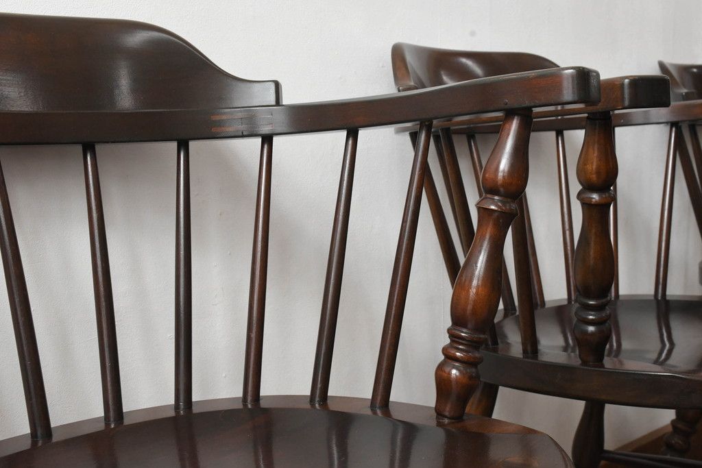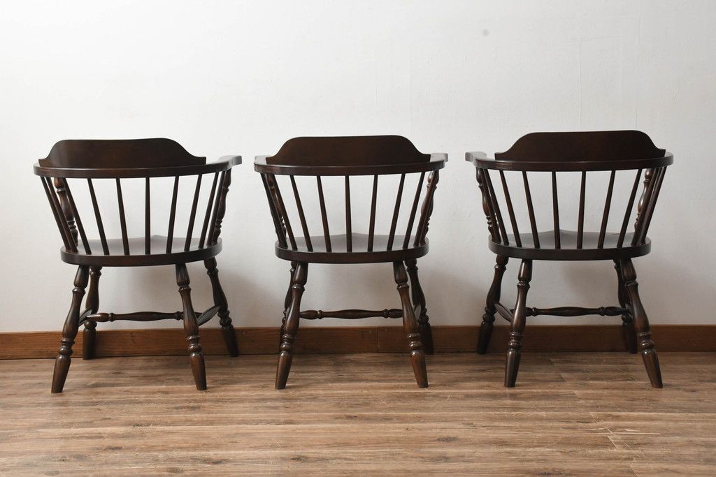 ラフジュ工房> 民芸家具 > 和製ビンテージ 松本民芸家具 #91型 落ち着きのある大人カフェ風インテリアが叶うキャプテンチェア3脚セット(アームチェア、板座チェア、ダイニングチェア、椅子、イス、ヴィンテージ、バラ売り可能)(定価3脚で約39万円)(R-081735)
