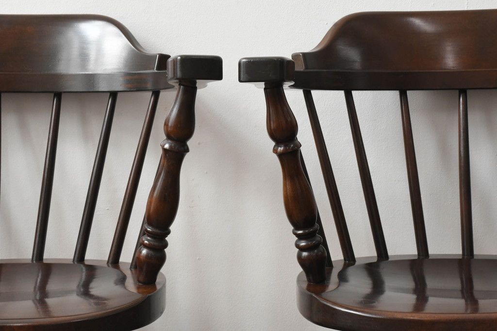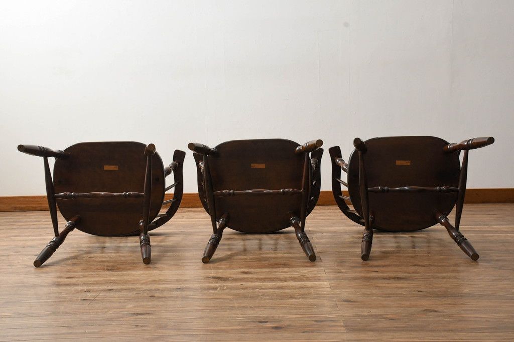 ラフジュ工房> 椅子・ベンチ> アームチェア > 和製ビンテージ 松本民芸家具 #91型 落ち着きのある大人カフェ風インテリアが叶うキャプテンチェア3脚セット(アームチェア、板座チェア、ダイニングチェア、椅子、イス、ヴィンテージ、バラ売り可能)(定価3脚で約39万円)(R-081735)