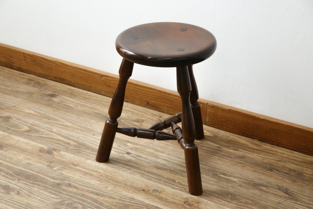 花台・飾り台 > 中古 美品 松本民芸家具 シンプルさの中にこだわりのデザインが光る三脚(トライポッド)スツール(丸椅子、イス、いす、板座チェア、花台、飾り台、ディスプレイ台)(R-081738)