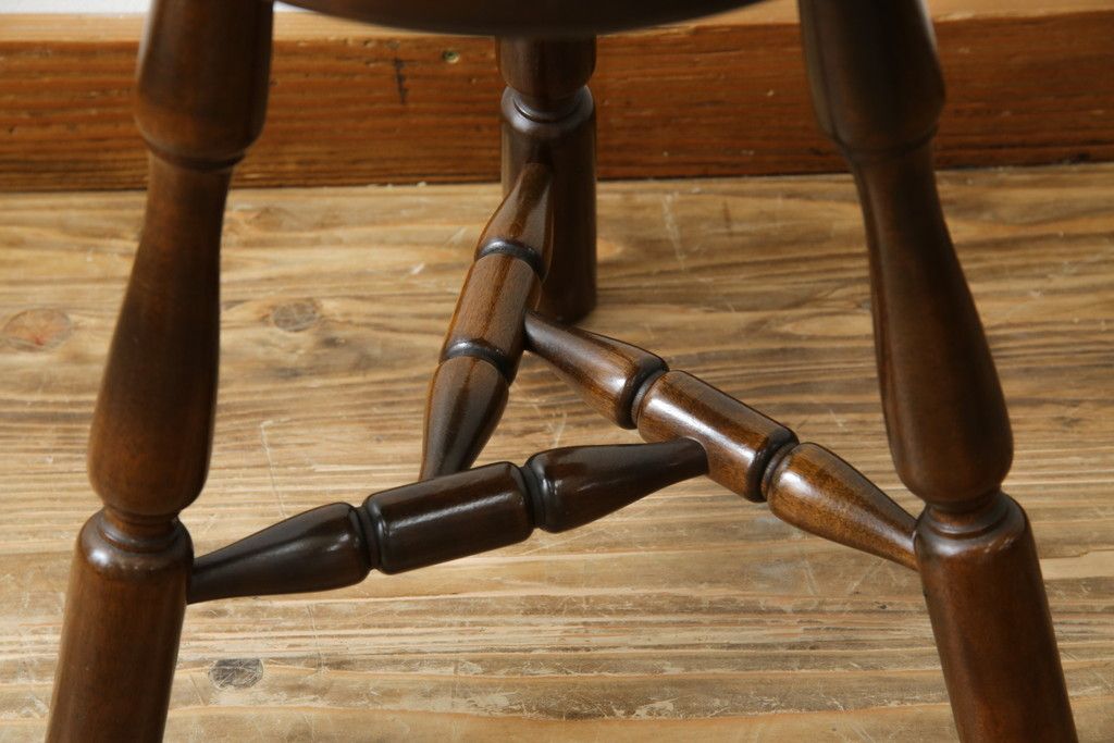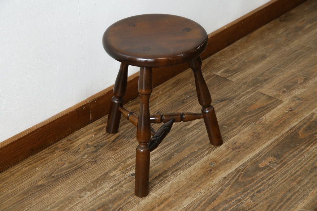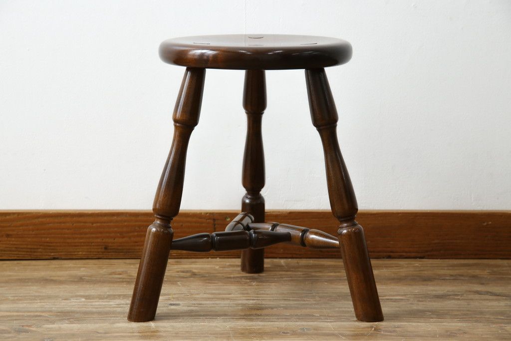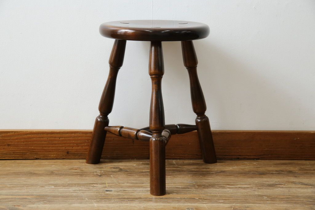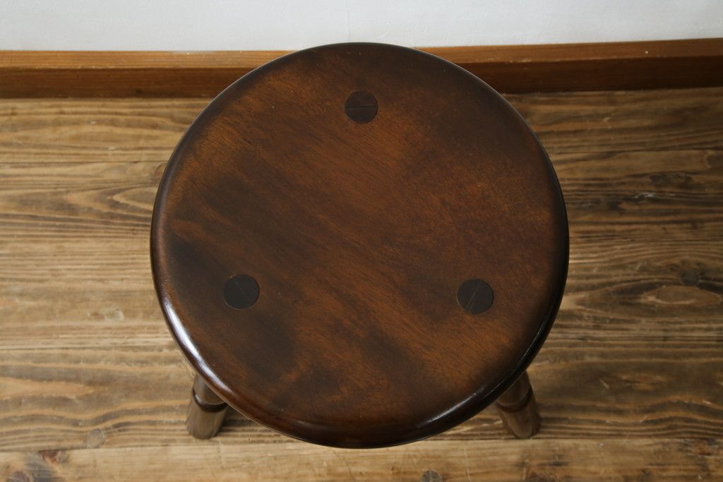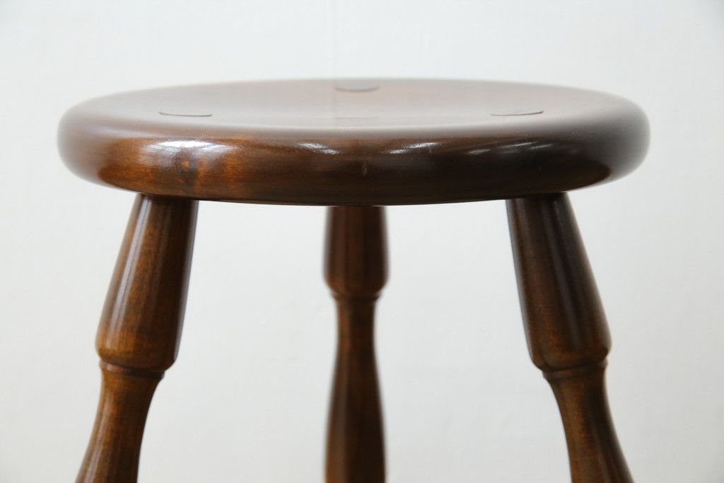 椅子・ベンチ> スツール > 中古 美品 松本民芸家具 シンプルさの中にこだわりのデザインが光る三脚(トライポッド)スツール(丸椅子、イス、いす、板座チェア、花台、飾り台、ディスプレイ台)(R-081738)