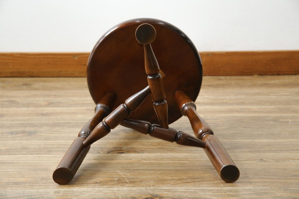 中古 美品 松本民芸家具 シンプルさの中にこだわりのデザインが光る三脚(トライポッド)スツール(丸椅子、イス、いす、板座チェア、花台、飾り台、ディスプレイ台)(R-081738)